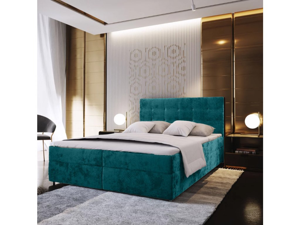 Oblazinjena postelja boxspring GLORIEN VELVET 140x200 cm turkizna KRONOS 13