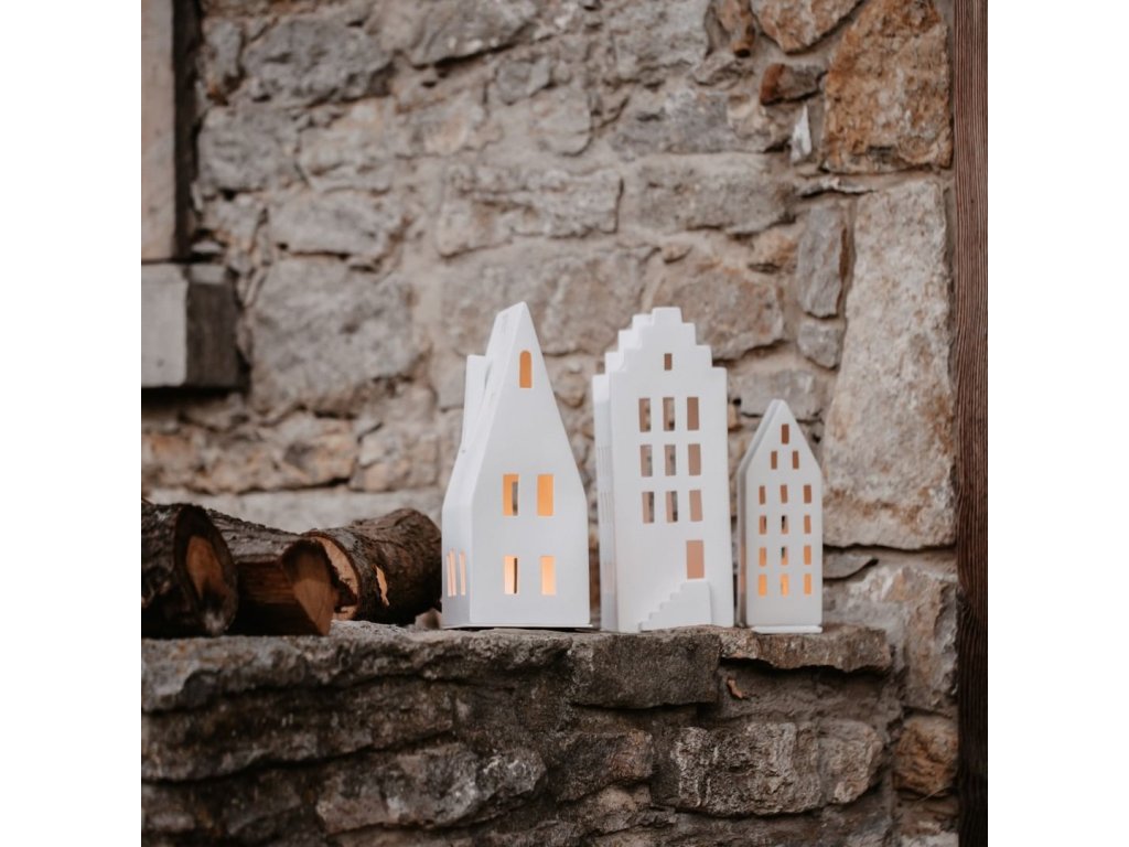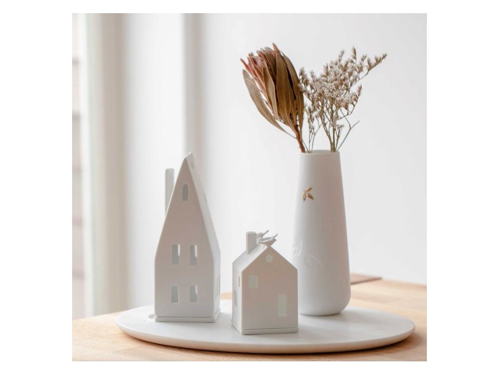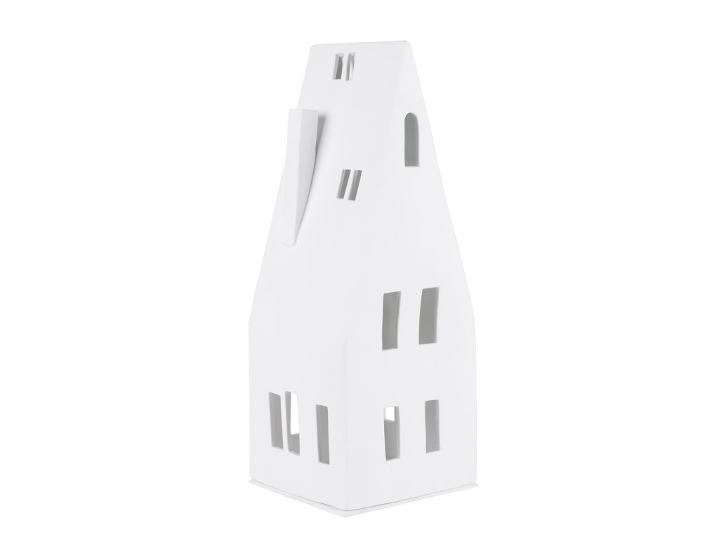 Bela porcelanasta svečnik HIŠKA s koničasto streho, velik
