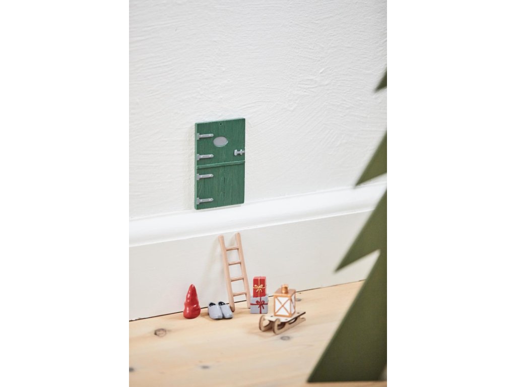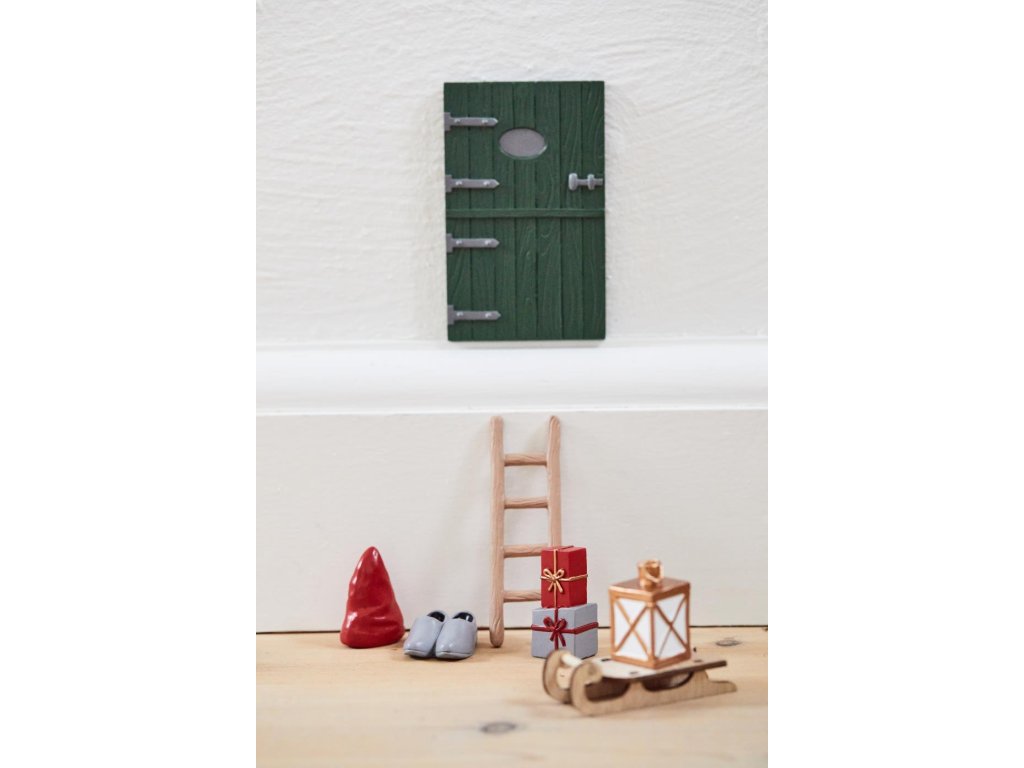 - Paket vsebuje: vrata, lestev, lanterno, drevo, kapico, copate in skledico