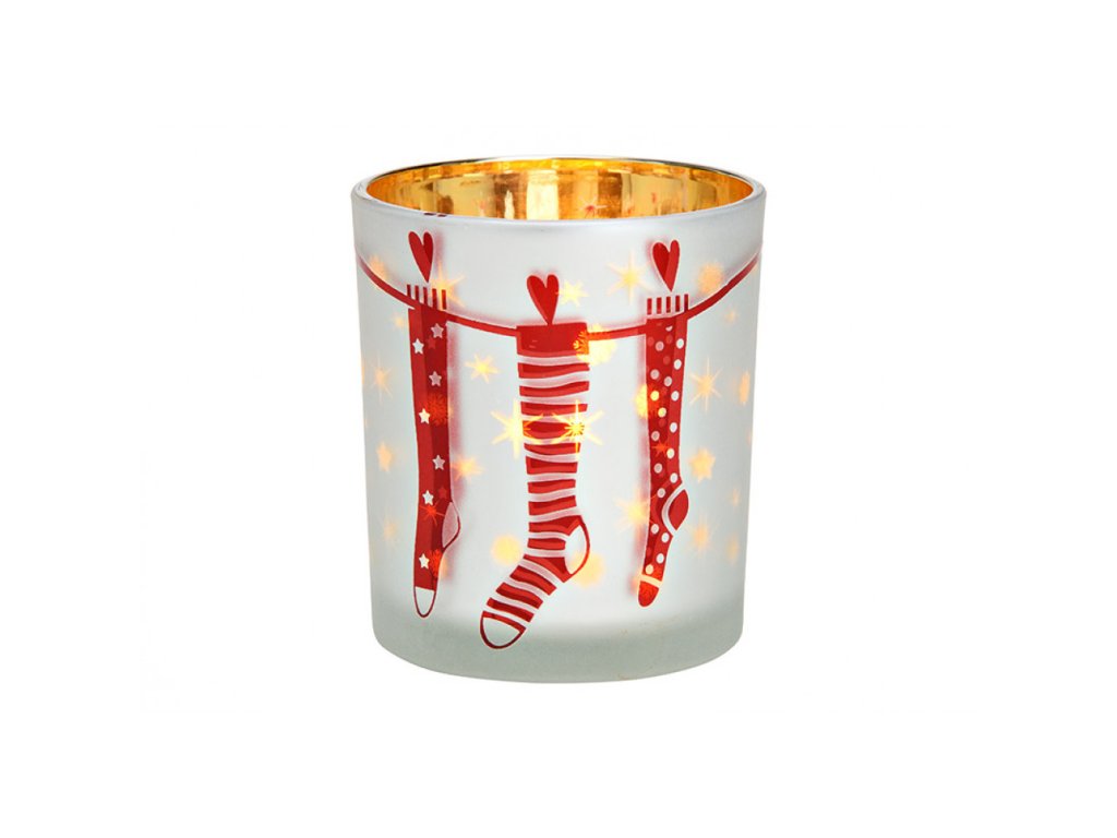 Stekleni svečnik CHRISTMAS STOCKING 10 cm bel