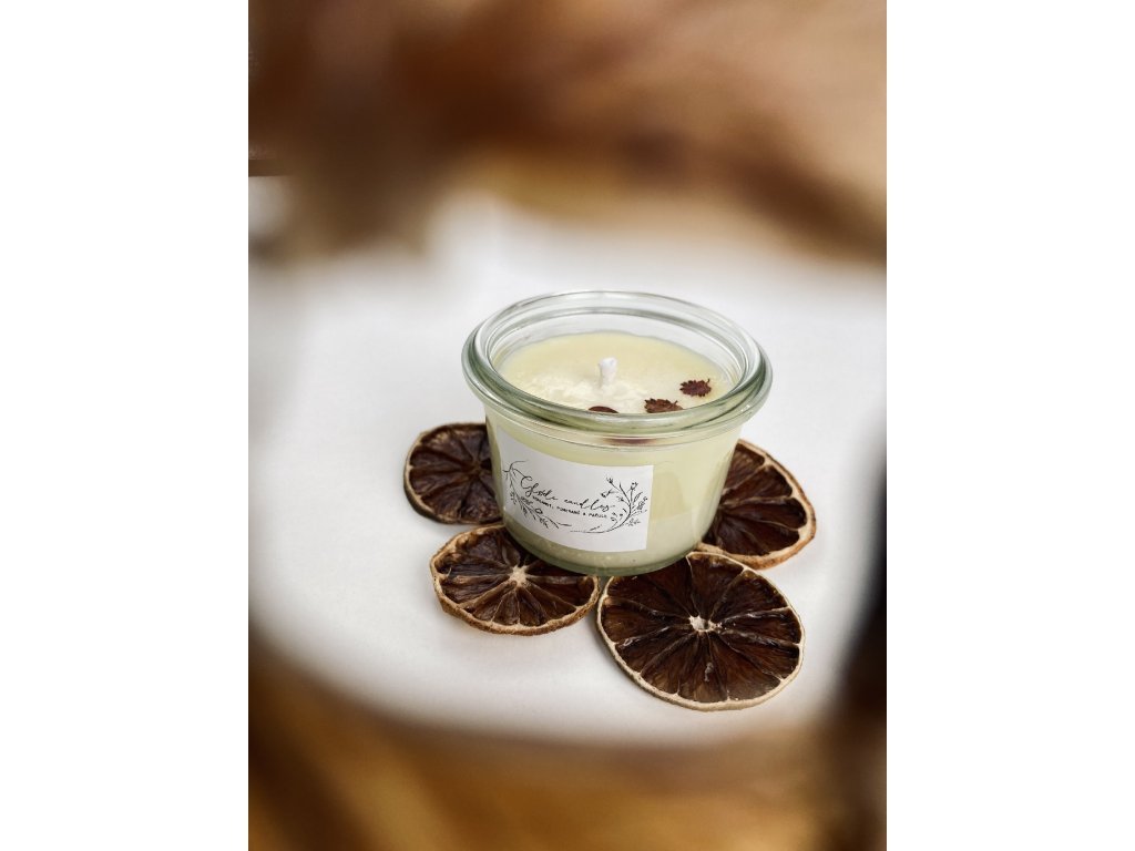 Ročno vlita sojina sveča BERGAMOT, POMARANČA & PAČULI 160 ml
