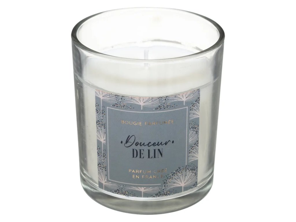 Steklena dišeča sveča v kupoli PIŠČANEC mehkoba lana