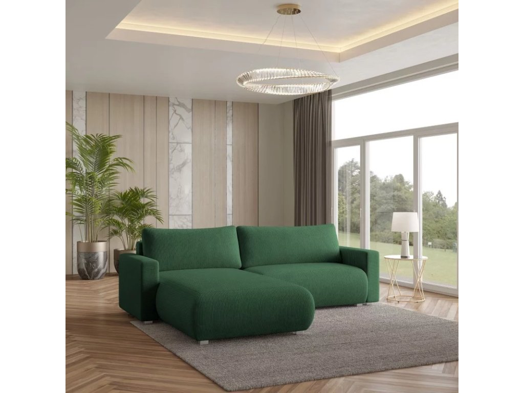 PROMOCIJA Temno zelena raztegljiva kotna sedežna garnitura TAFIRA, obojestranska II. kakovost