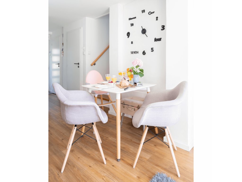 V notranjosti je vredno razvijati vrednote, kot so kakovost, natančnost in zmernost. V preprostosti je lepota, to velja dvakrat pogosteje za skandinavski stil. Izpopolnjen dizajn navdihnjen v severnih državah vnaša v prostor lahkotnost, energijo in zračnost. Nežna barvna paleta prostor optično poveča in posvetli. Notranjost izstopa po funkcionalnosti in čistosti. Skandinavske jedilnice in kuhinje ustvarjajo velik odprt prostor, poln svetlobe in harmonije. Jedilna miza Didier 70 x 70 cm se zaradi svojih dimenzij prilega tudi v manjše prostore. Bela plošča in noge v naravnem dekorju hrasta krasijo vsako jedilnico. Ne bojte se kombinirati z bolj izrazitimi dodatki in oblazinjenimi stoli.