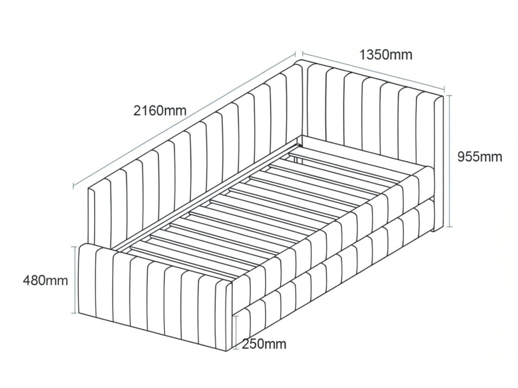 - Dimenzija vzmetnice v spodnjem delu: 120 x 200 cm