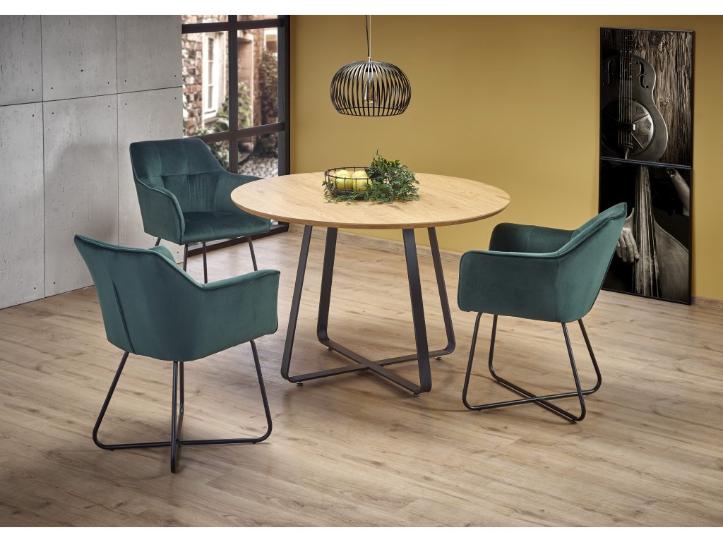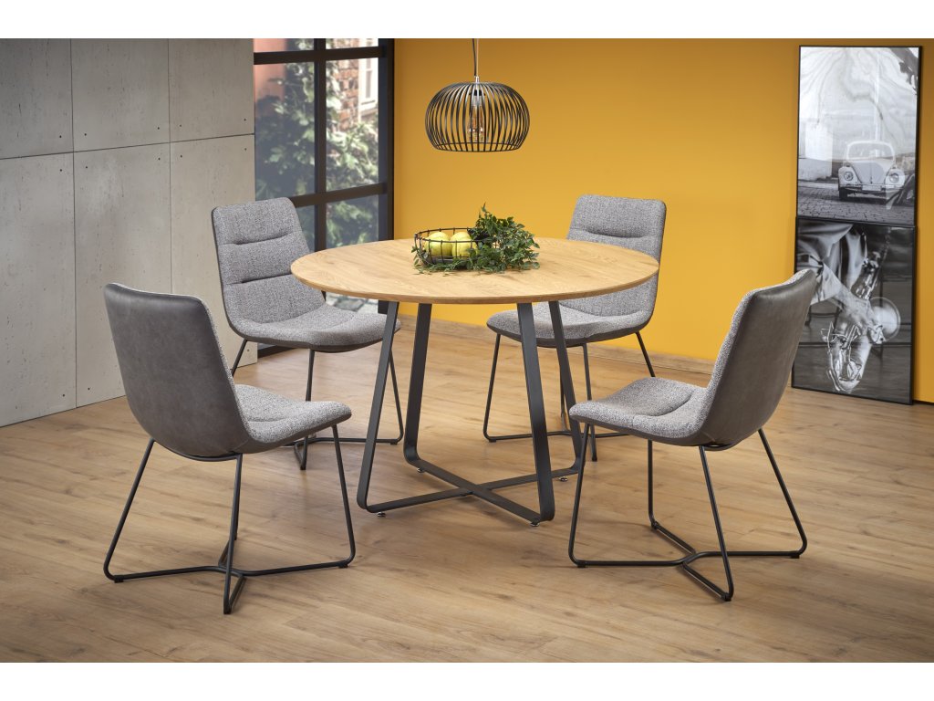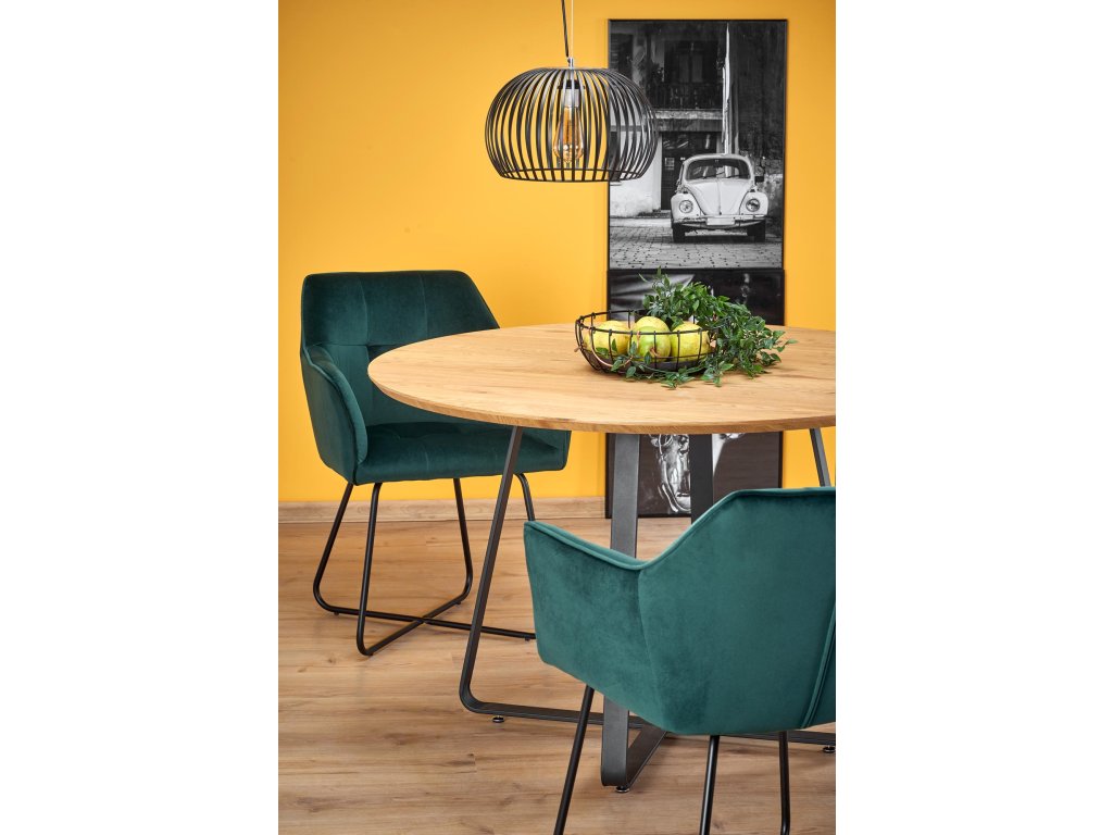 AKCIJA Črna jedilna miza z hrastovo ploščo NOCTURNE 120x120 II. kakovost