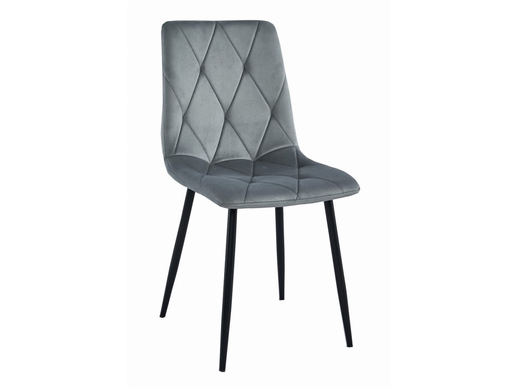 AKCIJA Sivi žametni jedilni stol LIBRA s črnimi nogami II. kakovost