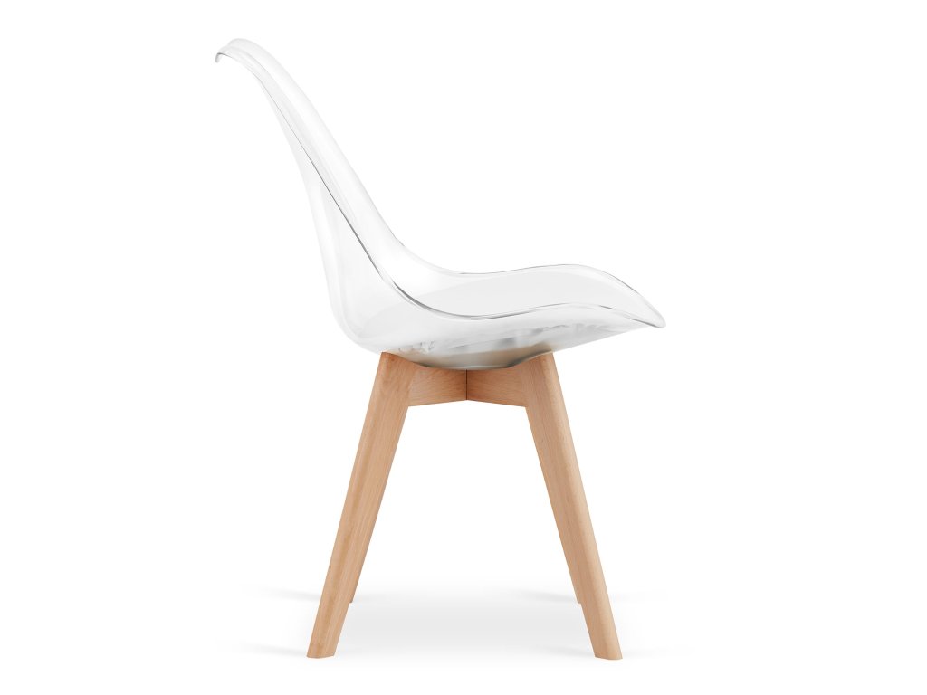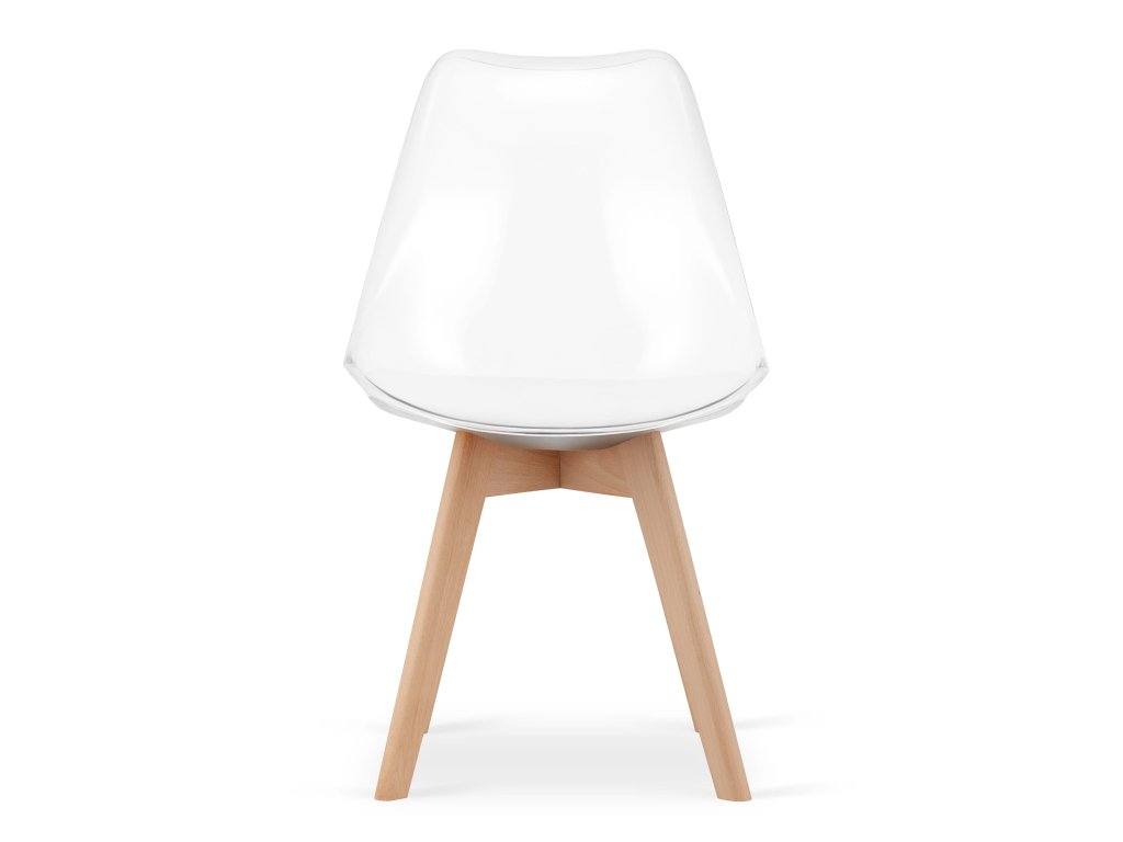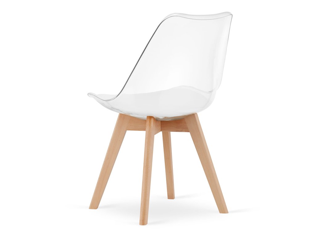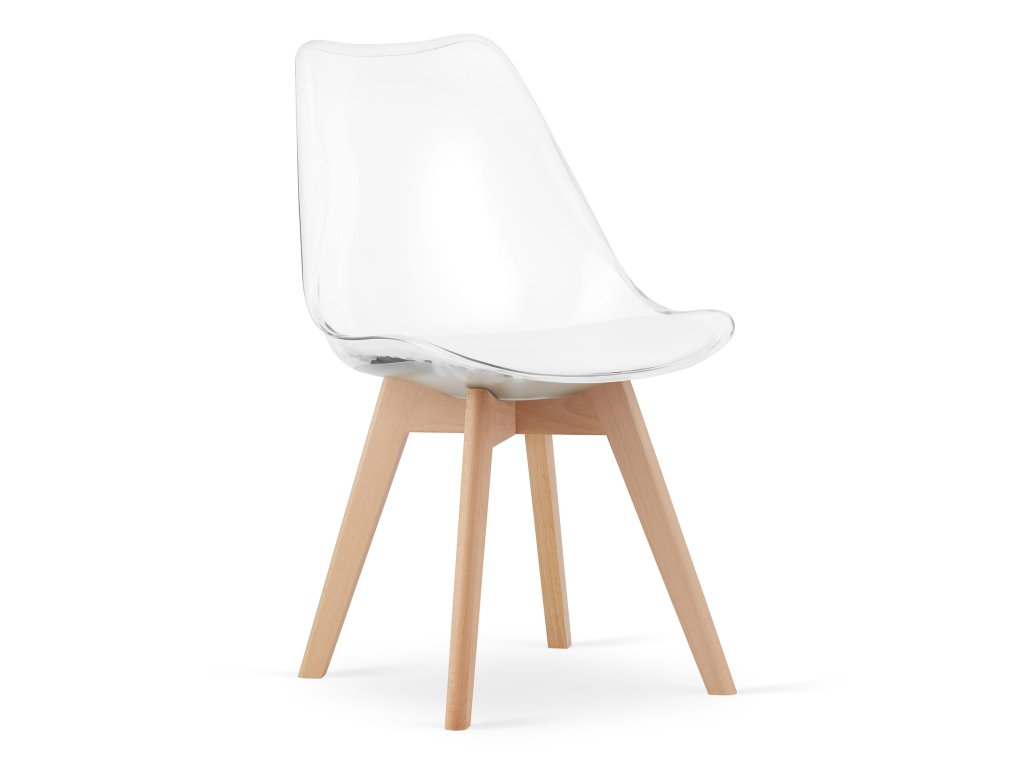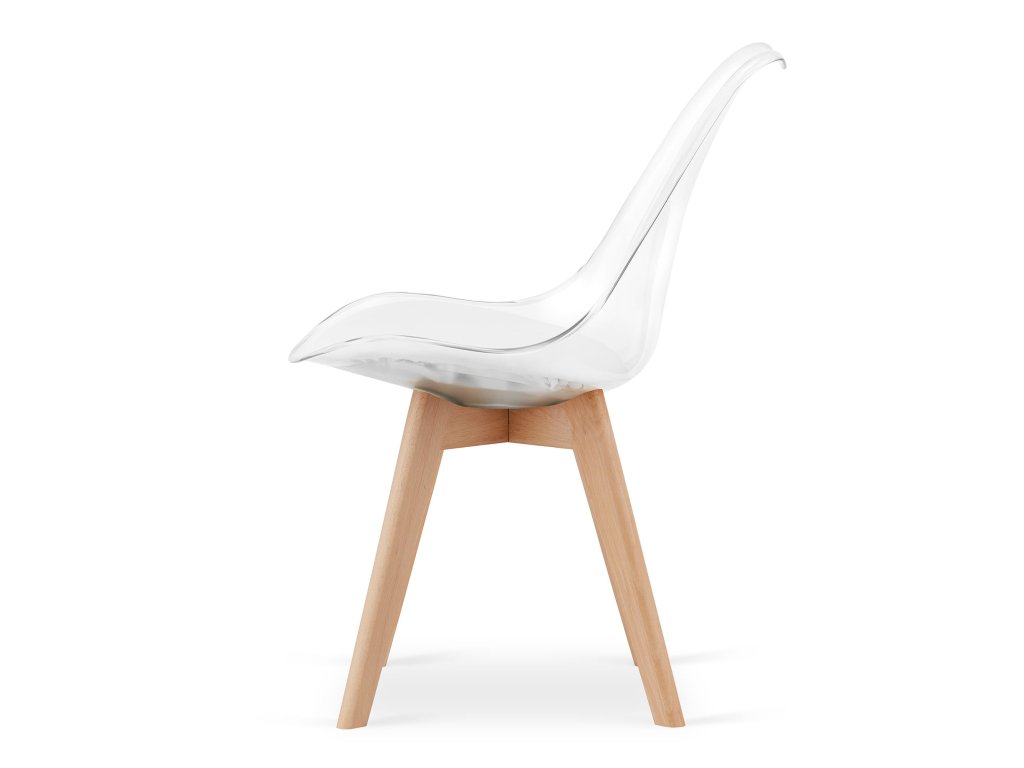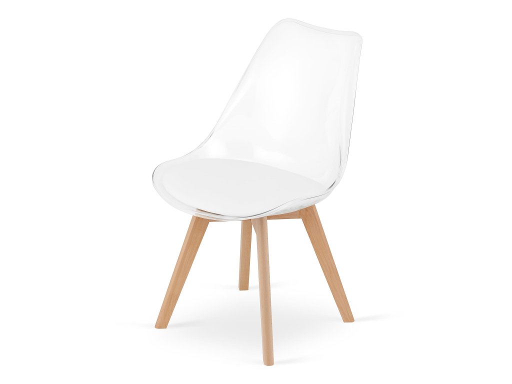 Jedilni set 1 + 4, bela miza ADRIA 120x80 cm + prozorni stoli BALI MARK z bukovimi nogami