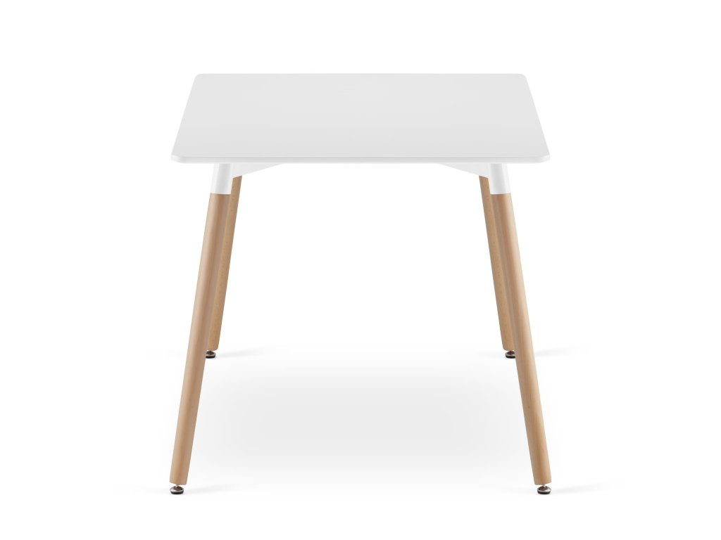 Miza in stoli, navdihnjeni z nordijskim dizajnom, prinašajo v vsako jedilnico moderen videz in praktičnost. Nežna kombinacija belega površja mize in naravnega bukovega lesa dodaja interierju svežino in svetlobo. Ergonomska oblika stolov z črnim oblazinjenjem iz eko usnja zagotavlja udobje pri vsakodnevnem obedu ali daljšem sedenju.