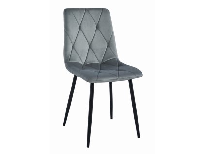 Sivi žametni jedilni stol MILA s črnimi nogami