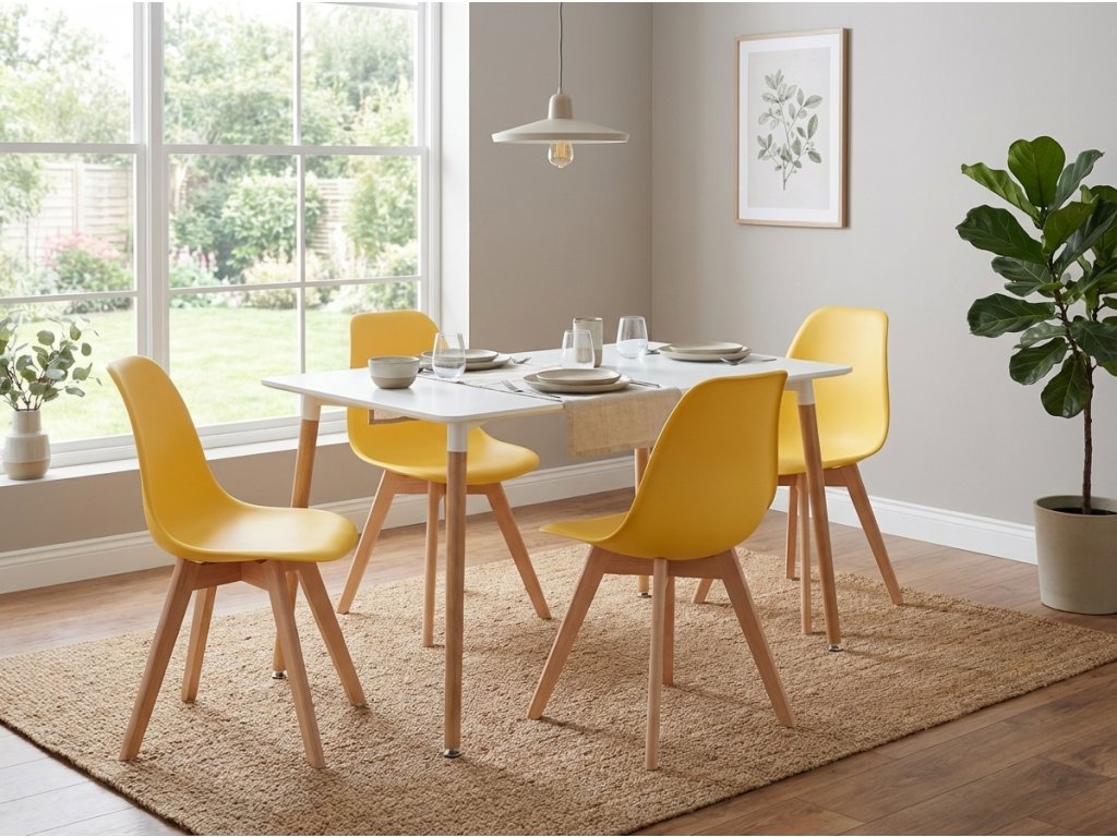 Gorcicno rumena stol KITO z bukovimi nogami