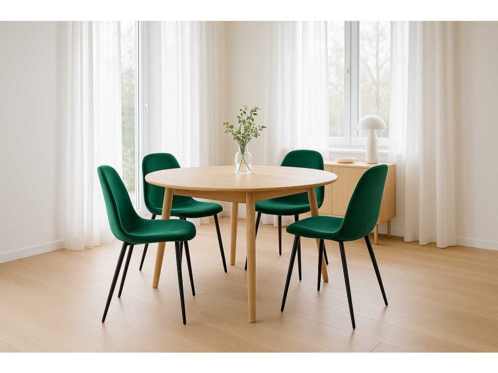 Slog, ki združuje preproste oblike in visoko funkcionalnost. Stavite na preproste dodatke, nežno paleto barv in naravne materiale. Odlični dodatki za skandinavsko jedilnico so zimzelene rastline, barvito namizno perilo in velike kovinske svetilke. Skandinavski interier ne more brez velikih oken in razsvetljave, ki zagotavlja svetlobo tudi v kratkih dneh. Temno zeleni žametni stol COMO se popolnoma prilega jedilnici, navdihnjeni s skandinavskimi državami. Preprosto šivanje in črne noge uskladite z mizo s kovinskimi elementi. Odlično izgledajo različne barve stolov pri eni mizi. Ne bojte se sprememb.