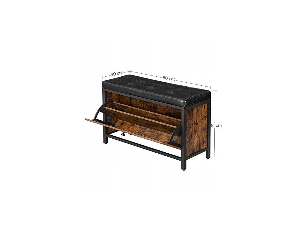 Ta klop z zložljivo omaro za čevlje je idealna pomočnica za vsakodnevno rutino. Elegantly združuje udobje sedenja s praktičnim shranjevalnim prostorom za obutev. Zaradi kompaktnih dimenzij je primerna tudi za manjše prostore, kjer pomaga ohranjati red in hkrati ponuja stilni dodatek v industrijskem duhu. Črno oblazinjenje iz eko usnja dodaja sodoben videz in se zlahka čisti. Ne glede na to, ali jo postavite v predsobo, spalnico ali hodnik, boste pridobili ne le praktičen, temveč tudi vizualno zanimiv kos pohištva.