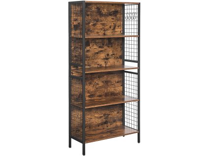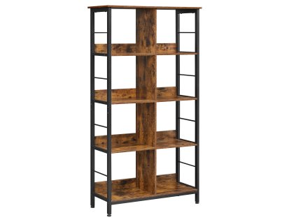 Regál TAYLOR hnědý s černou konstrukcí – Úzký regál se 6 policemi, industriální styl, kov a dřevo, výška 187,5 cm. 2260_1