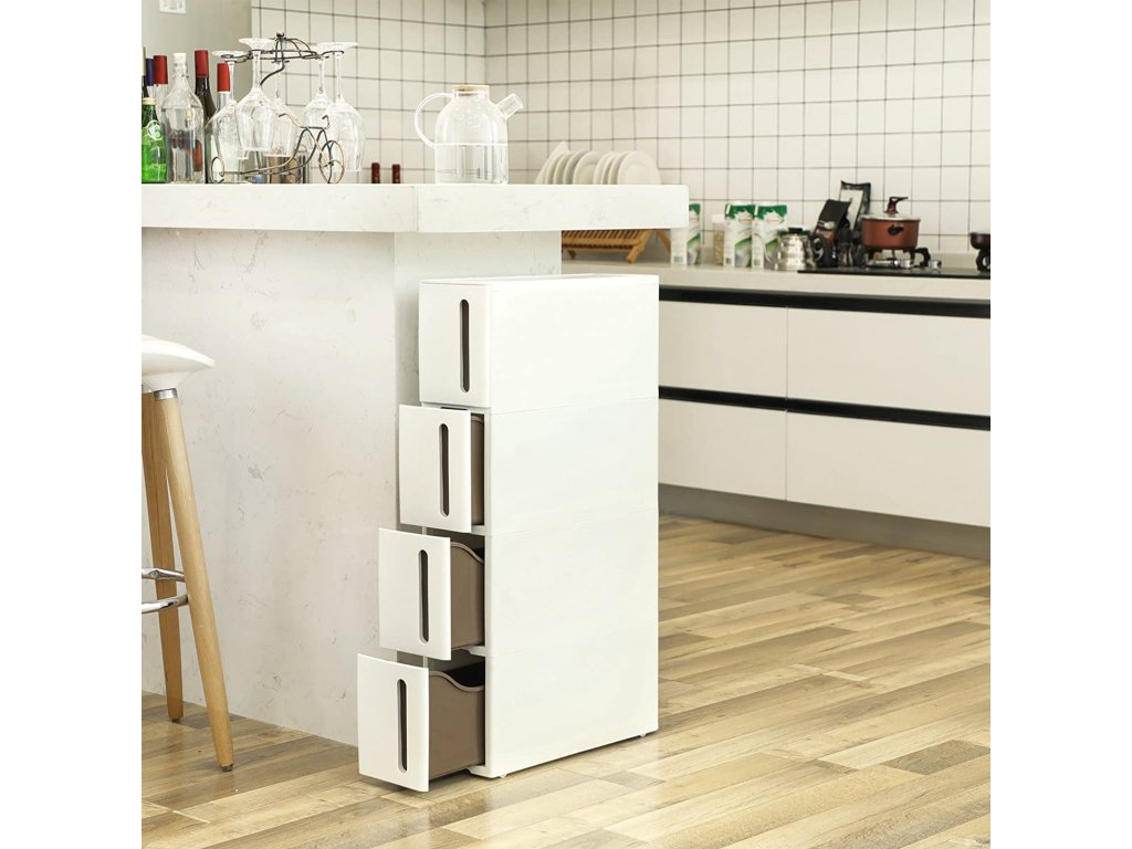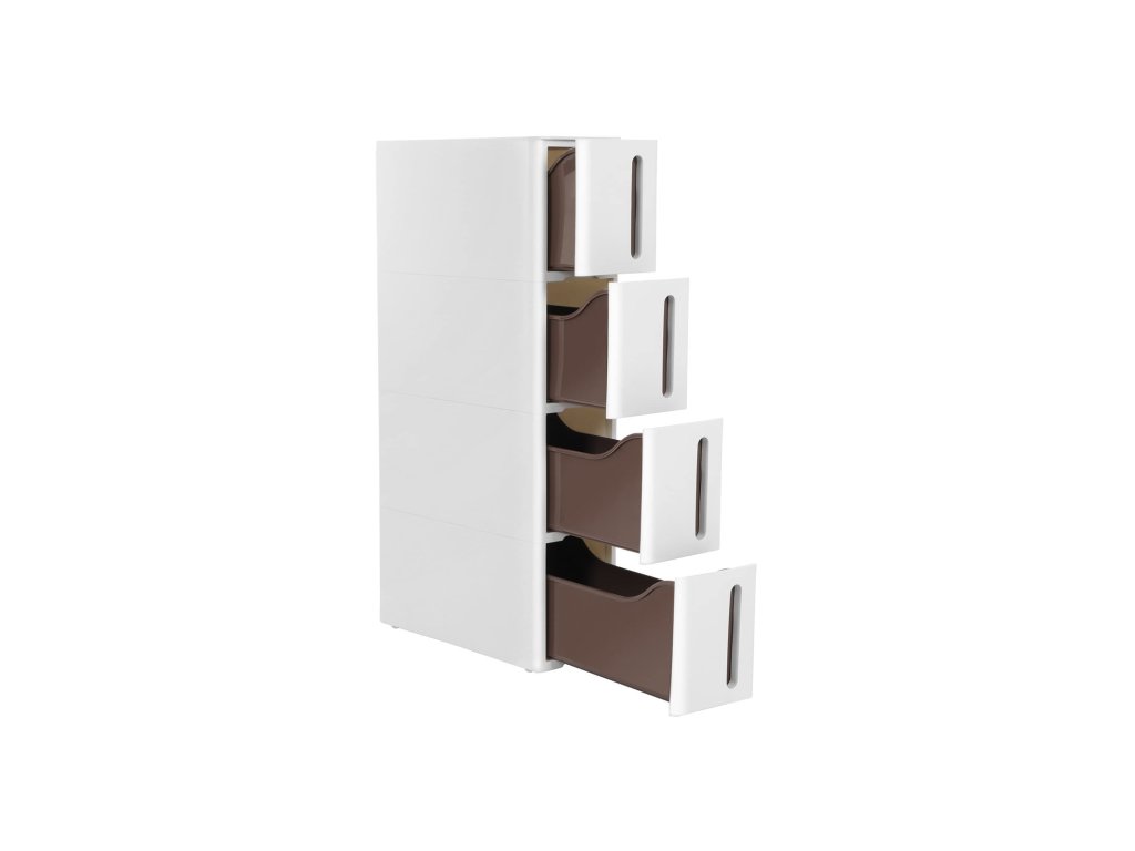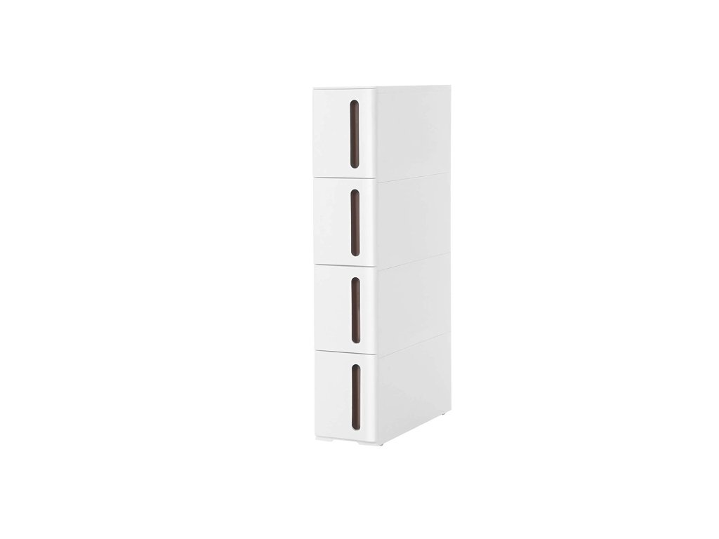 Ozek regal na kolescih s 4 predali TROLLEY 17x84 cm, beli