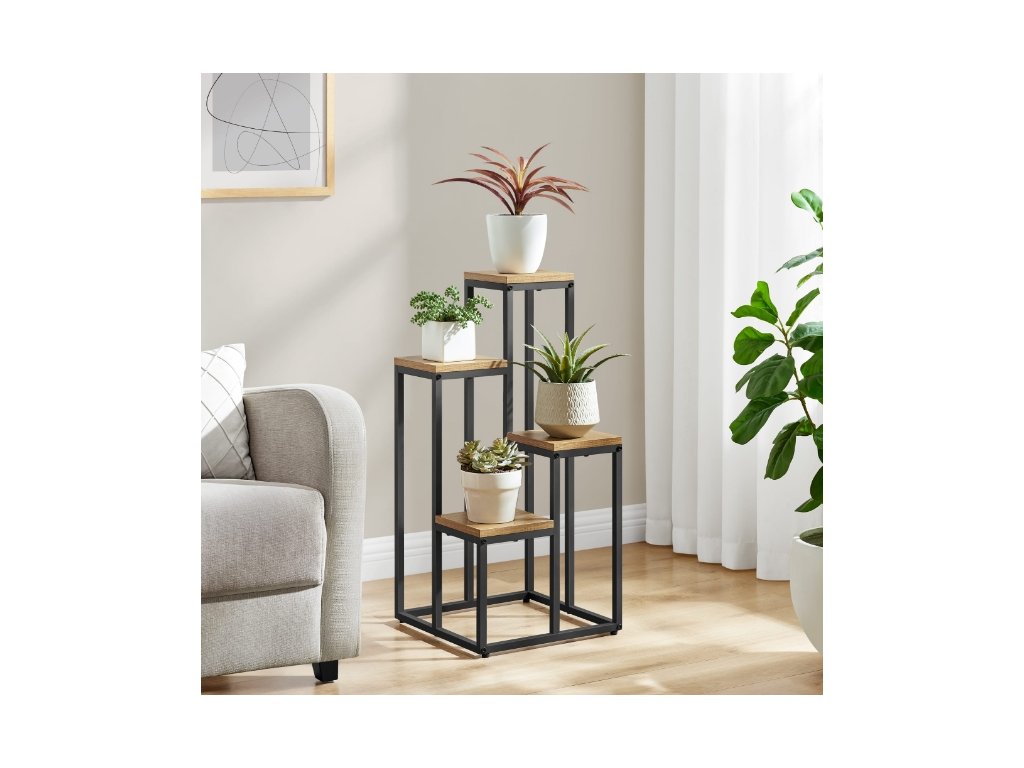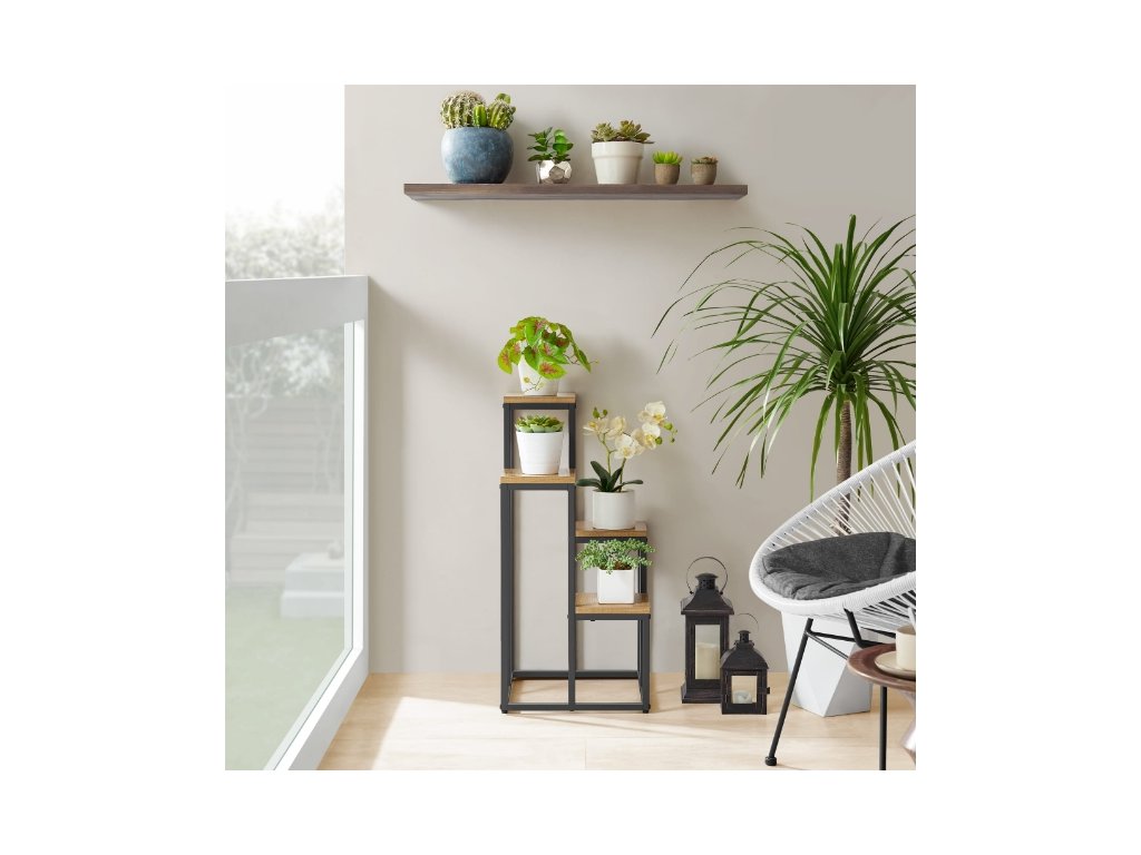 Stojalo za rože LORAN s 4 policami v dekorju hrasta, črno