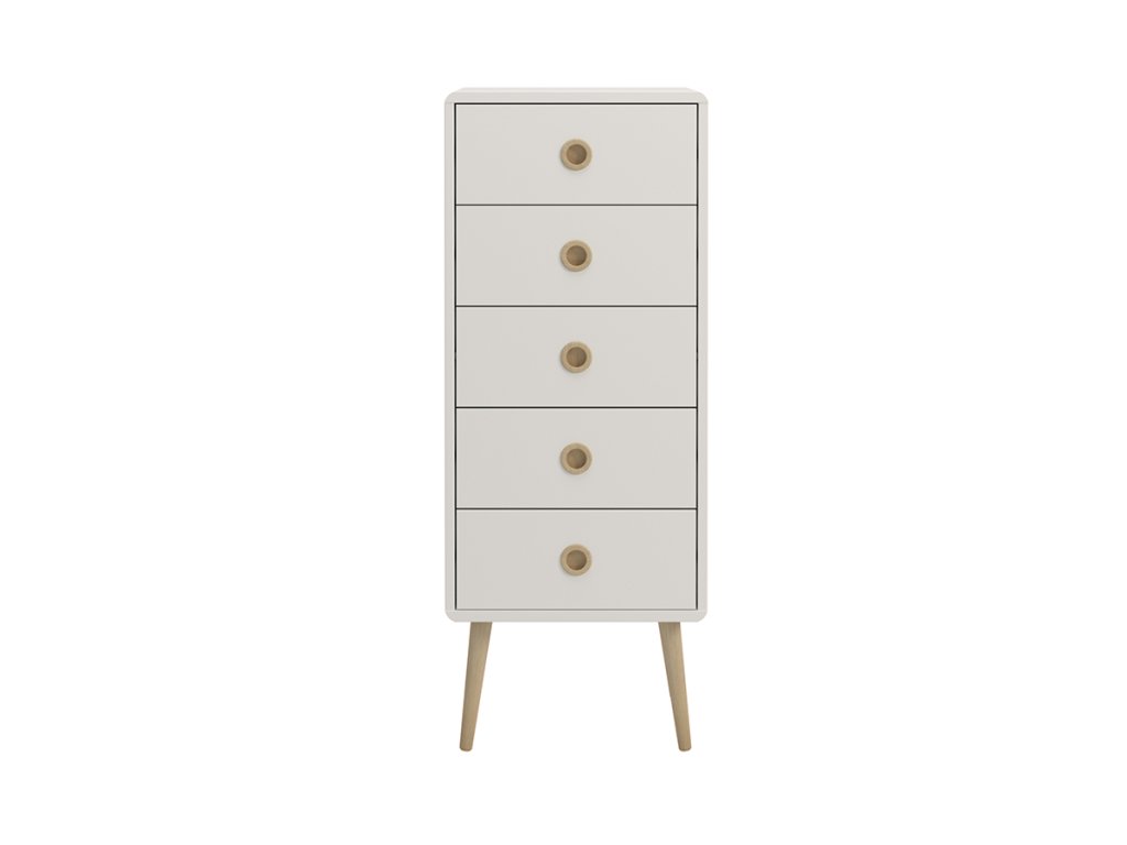 Bela komoda PRIMO s 5 predali