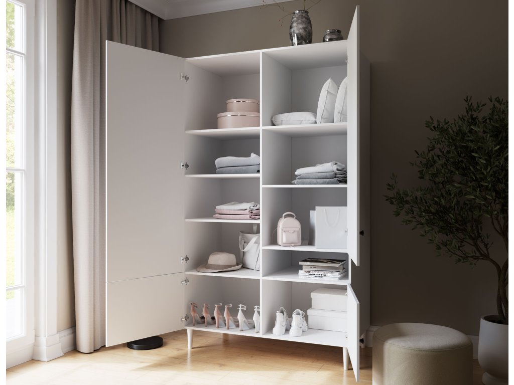 Ta garderobna omara je idealna rešitev za vse, ki iščejo moderno in funkcionalno pohištvo z dovolj prostora za shranjevanje. Njena prefinjena razporeditev vam omogoča enostavno organizacijo oblačil, dodatkov in drugih predmetov, hkrati pa prinaša čist, minimalističen videz, ki poživi vaš prostor. Zahvaljujoč kakovostnim materialom in brezčasnemu dizajnu bo ta omara postala praktičen in estetski element vašega doma, ki bo izpolnil vse vaše potrebe.