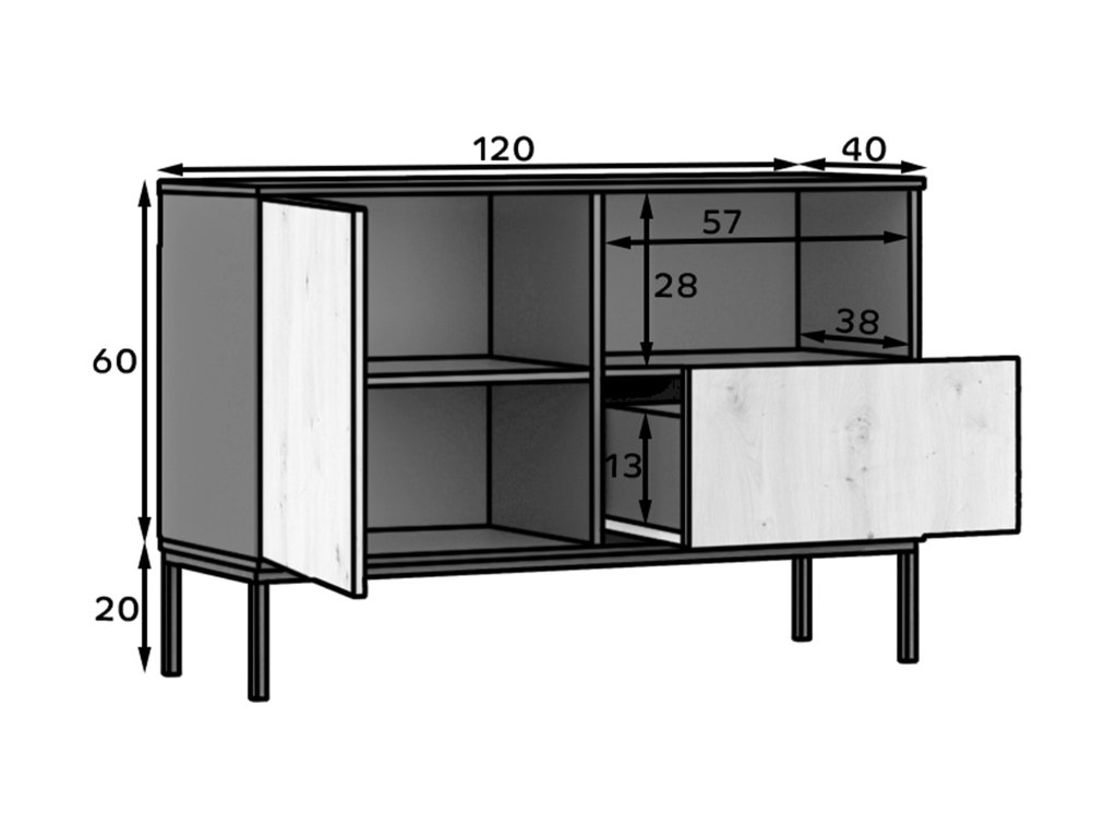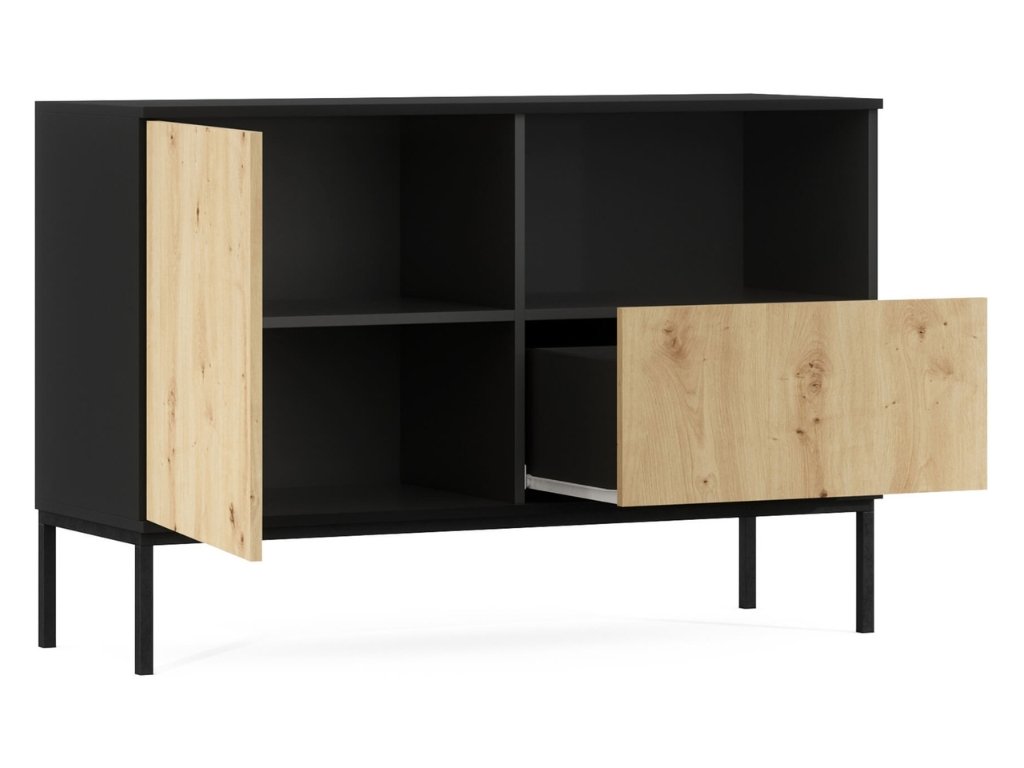 Komoda LANZZI 120x40 cm, črna/hrast