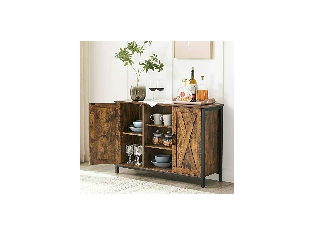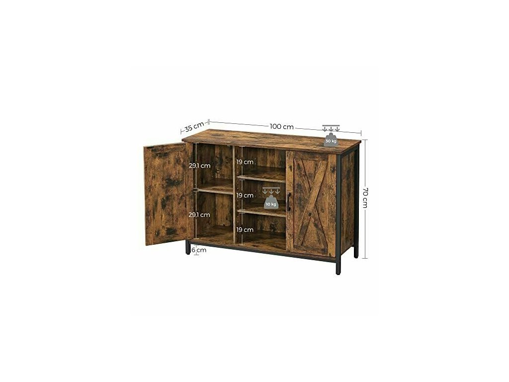 Kombinacija lesa in kovine prinaša v notranjost ne samo sodobni industrijski videz, ampak tudi visoko odpornost in stabilnost. Ta kos pohištva je odličen za dnevno sobo, hodnik ali delovno sobo. Nudi dovolj shranjevalnega prostora in hkrati deluje estetsko in čisto. Zaradi praktične izvedbe z odprtimi policami in zapiralnimi vrati zlahka ohranite red. Idealen je za tiste, ki iščejo funkcionalnost in slog v enem.