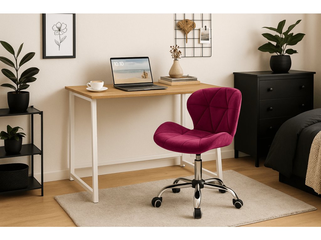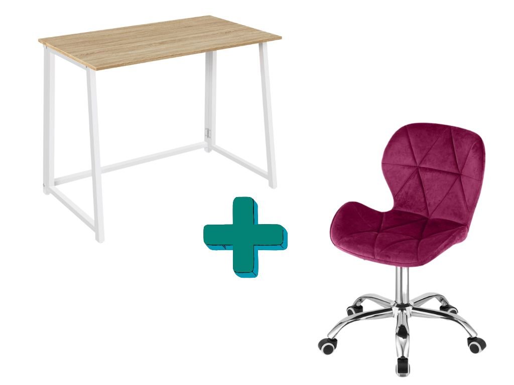 Set za delovno sobo ZARIMO miza 80x40 cm bela + stol AVOLA VELVET vinsko rdeč