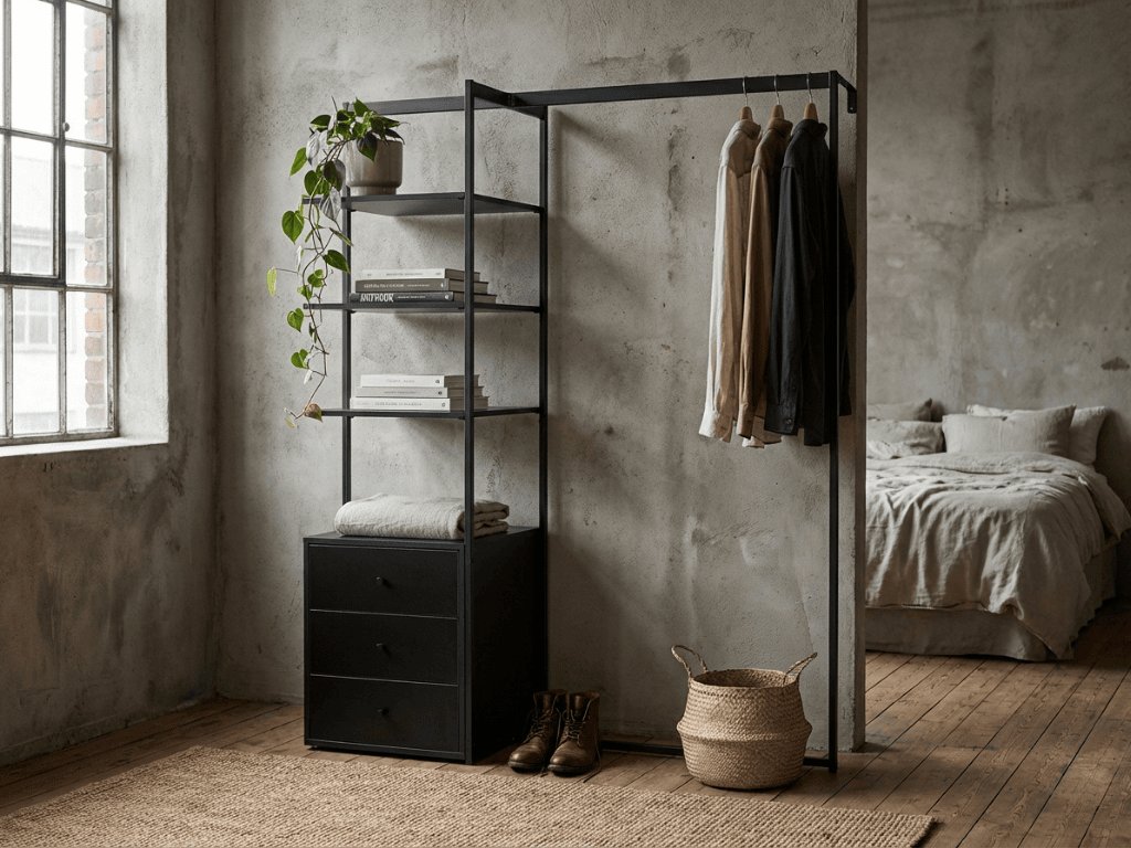 Odprti garderobni sistem je idealna rešitev za moderne interierje, kjer je poudarek na preglednost, funkcionalnost in zračen videz. Omogoča vam, da imate oblačila in dodatke vedno pri roki, pregledno urejene in zlahka dostopne. Odlično se poda v predsobo, spalnico ali garderobo, kjer lahko nadomesti klasično omaro, hkrati pa prostora optično ne obremeni.
