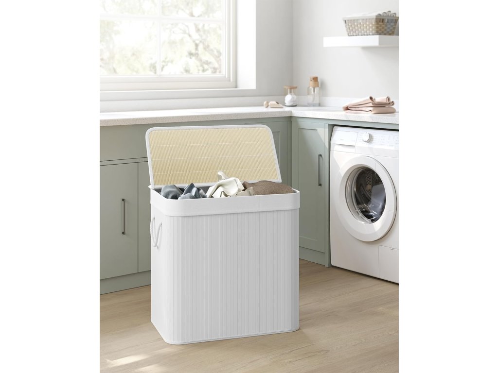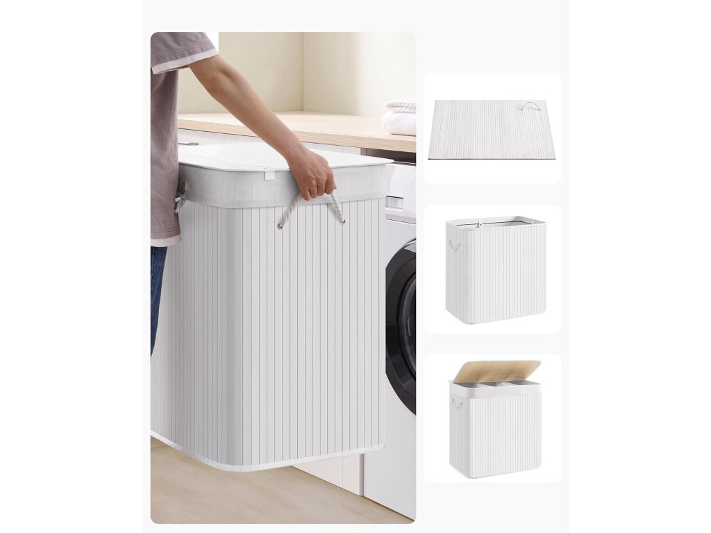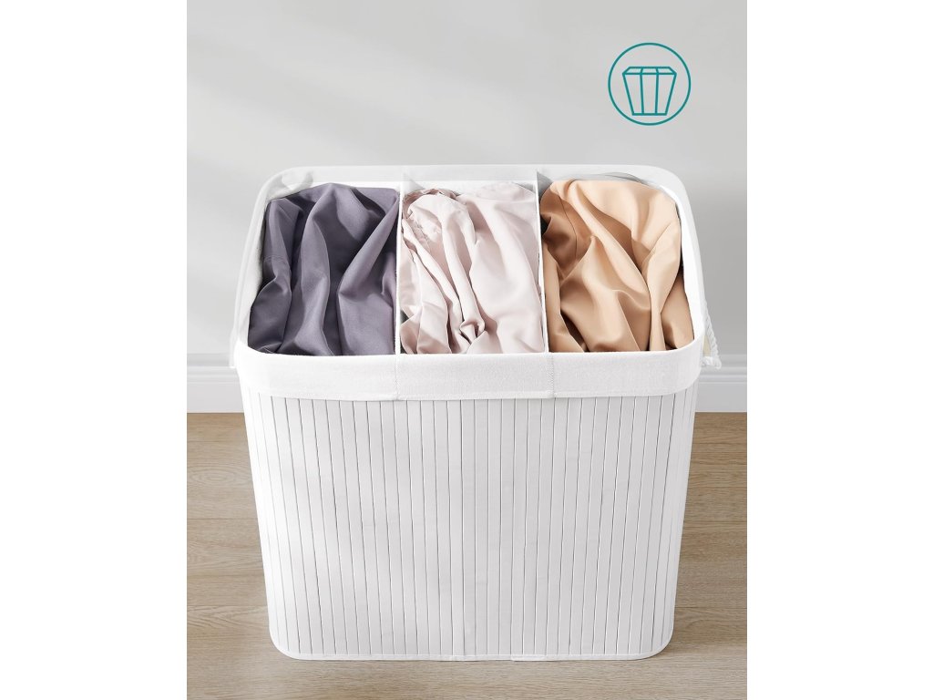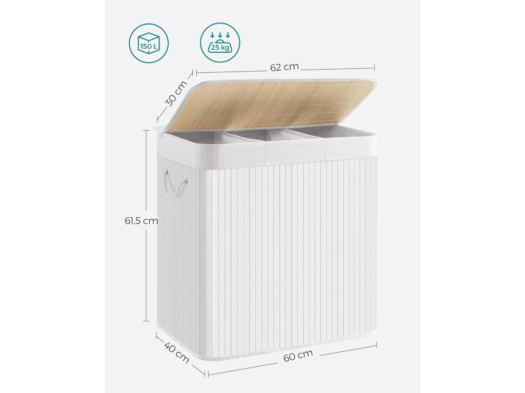 Bela trikomorna košara za perilo iz bambusa LECEBY