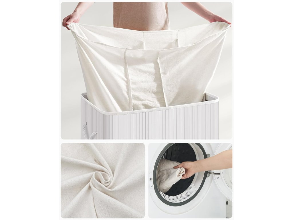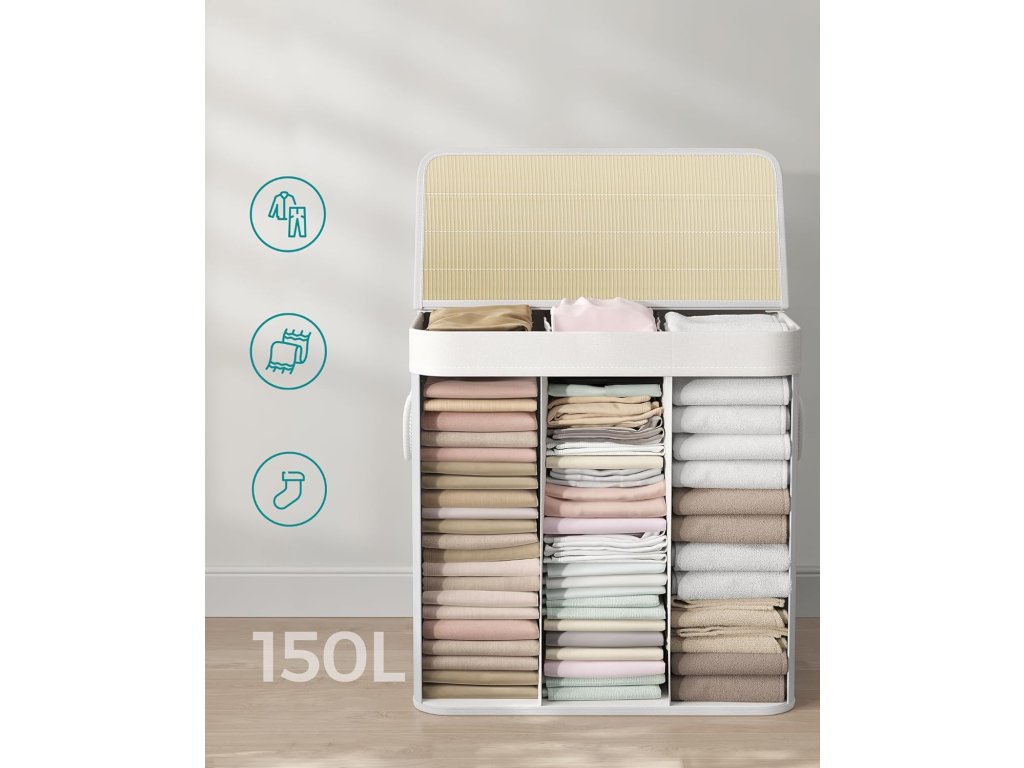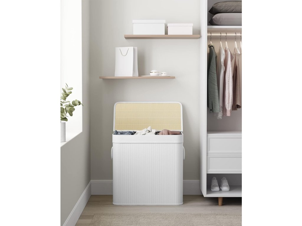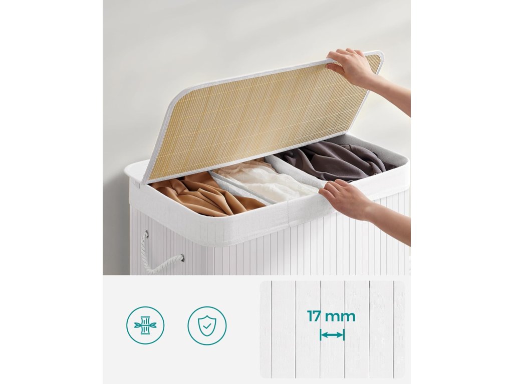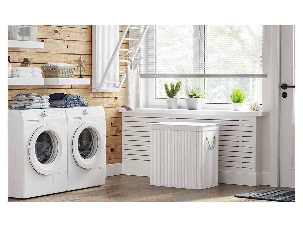 Bela trikomorna košara za perilo iz bambusa LECEBY