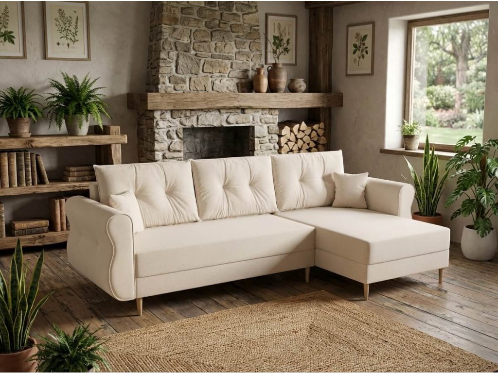 Raztegljiva obojestranska sedežna garnitura v obliki črke L SILVIANO 230x140 cm, kremna Cosmic 10