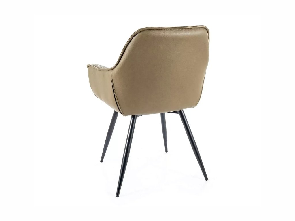Stol v elegantni olivni barvi prinaša notranjemu prostoru pridih originalnosti in okusa. Kombinacija kovinske konstrukcije in oblazinjene eko usnje zagotavlja ne le udobje pri sedenju, temveč tudi dolgo življenjsko dobo. Ustreza jedilni mizi, delovni sobi ali kot stilski soliter v predsobi. Zaradi svojega univerzalnega videza se enostavno prilega različnim stilom opreme – od moderne preko industrijske do minimalistične. Odlična izbira za vsakega, ki ceni funkcionalni dizajn brez kompromisov.