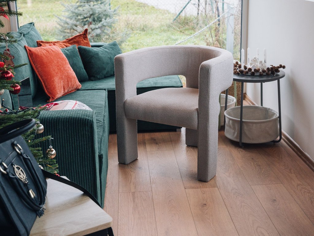 Oblazinjena tkanina Loop je stilno bouclé blago z rahlo zanko strukturo, ki deluje elegantno in hkrati prijetno na dotik. Idealna je za oblazinjenje foteljev, kavčev in drugih dodatkov za dom. Tkanina Loop doda prostoru domač karakter in poskrbi, da ima pohištvo moderen videz z dotikom luksuza.