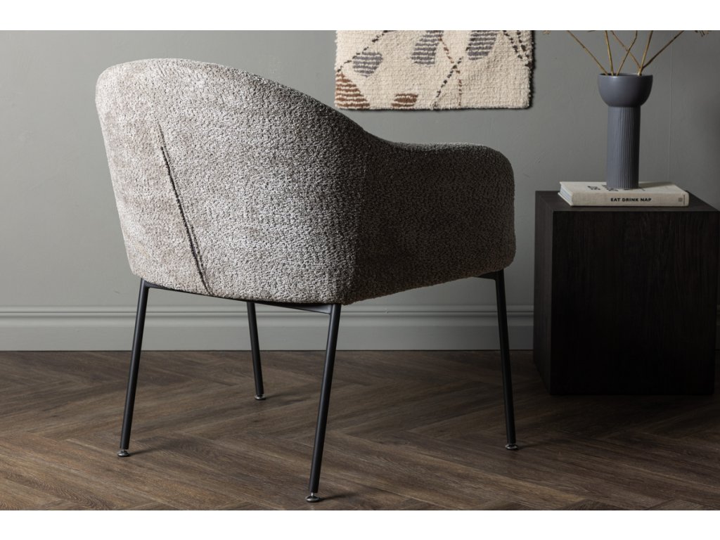 Naslanjač s prevleko Boucle združuje modern dizajn in maksimalno udobje. Njegova nežna tkanina z izrazito teksturo dodaja interierju eleganco in prijetnost, medtem ko trdne kovinske noge zagotavljajo stabilnost in trpežnost. Idealen je za dnevno sobo, delovno sobo ali spalnico, kjer ustvarja prijeten prostor za počitek. Zahvaljujoč mehki oblazinjenosti in ergonomičnemu oblikovanju boste uživali v popolnem počitku, pa naj gre za branje knjige, gledanje priljubljenega filma ali mirno sprostitev.