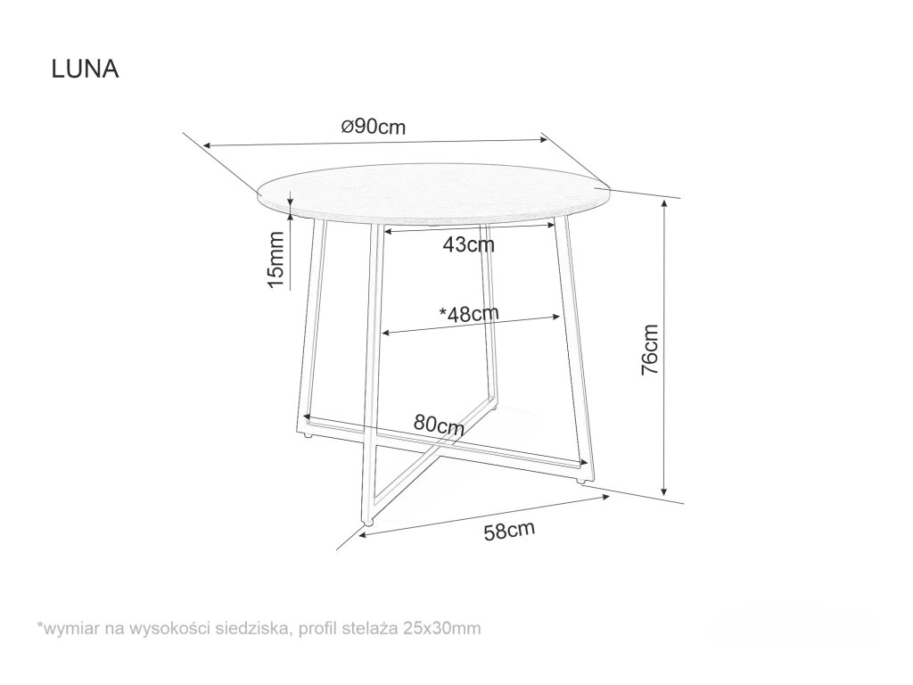 Okrogla jedilna miza z leseno ploščo v dekorju hrast LUNA 90x90