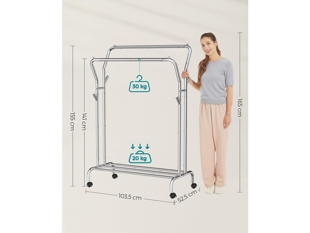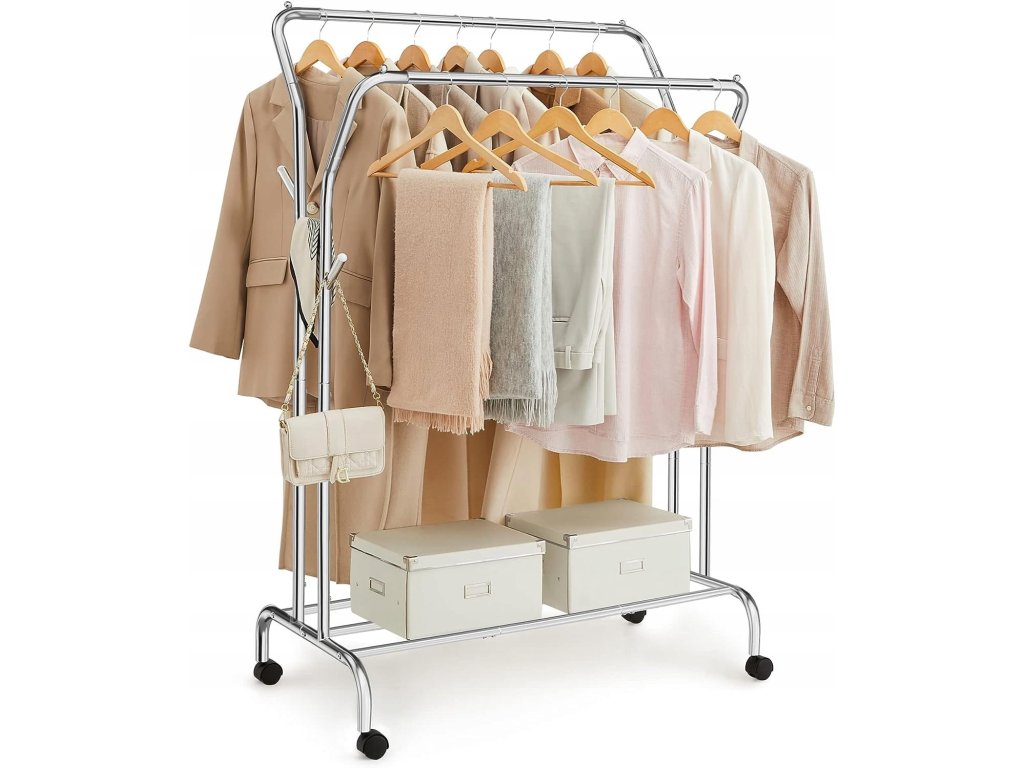 Dvonadstropno premično stojalo za oblačila HASAR, srebrno