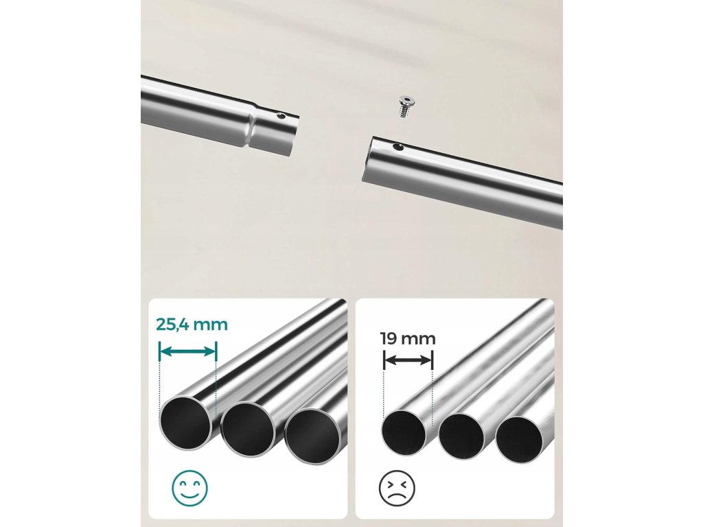 Sodobna in mobilna rešitev za organizacijo oblačil je ključ do urejenega in praktičnega predsobe. Obešalniki s kolesi ponujajo enostavno manipulacijo in omogočajo enostavno premikanje po potrebi. Jeklena konstrukcija zagotavlja stabilnost in visoko nosilnost, kar omogoča obešanje večje količine oblačil in težjih plaščev. Zaradi dodatnih kljuk in spodnje police boste pridobili dovolj prostora za dodatke ali obutev. Ta obešalnik je idealna izbira za tiste, ki želijo svoj prostor ne le dobro organiziran, ampak tudi stilen in prilagodljiv.