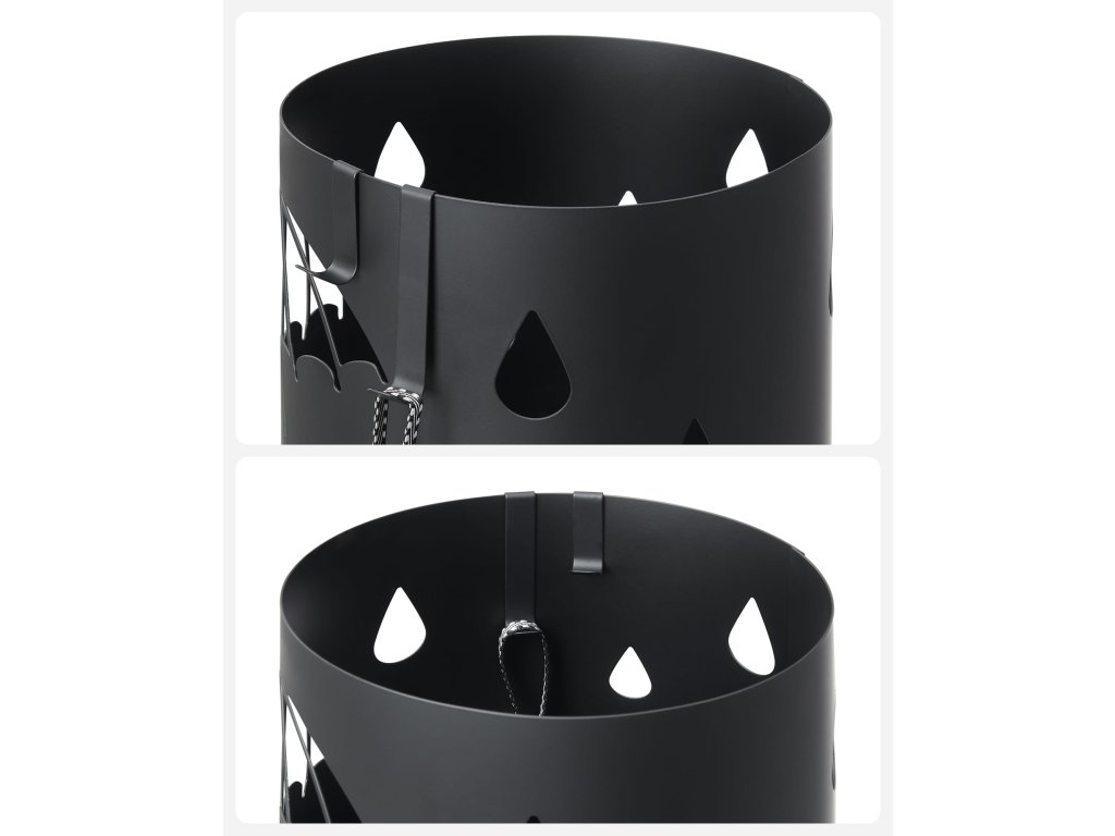 Elegantno stojalo za dežnike združuje stilski dizajn s praktičnimi detajli. Zaradi robustne kovinske konstrukcije in protizdrsnih podlog stoji stabilno na katerikoli površini. Odstranljiva vanička za vodo ujame odvečno vlago, s čimer ščiti tla pred poškodbami. Stojalo je zasnovano ne le za dežnike, temveč tudi za shranjevanje drugih dodatkov, kot so palice za nordijsko hojo. Njegov minimalistični videz se zlahka vklopi v katerikoli interier in vam zagotovi vedno red in preglednost.