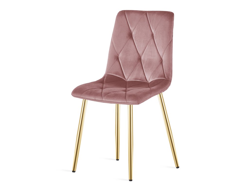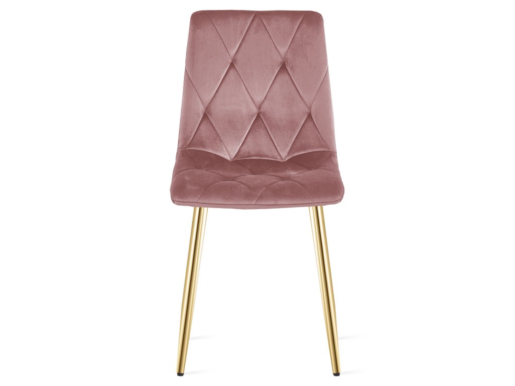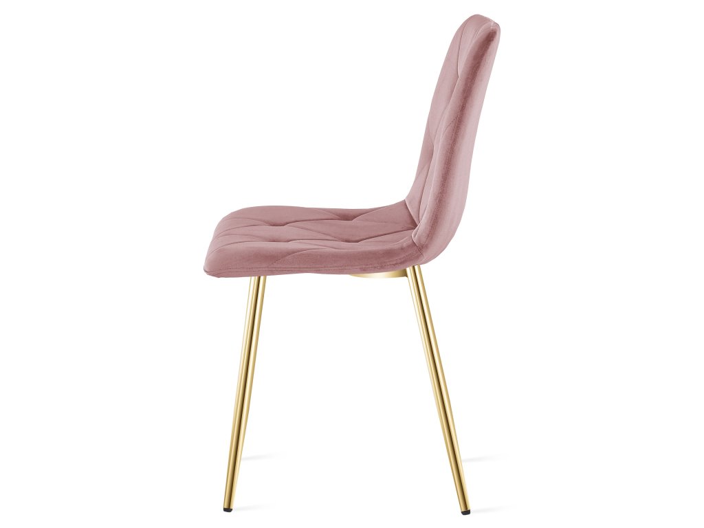 Rožnat žametni jedilni stol LIBRA z zlatimi nogami