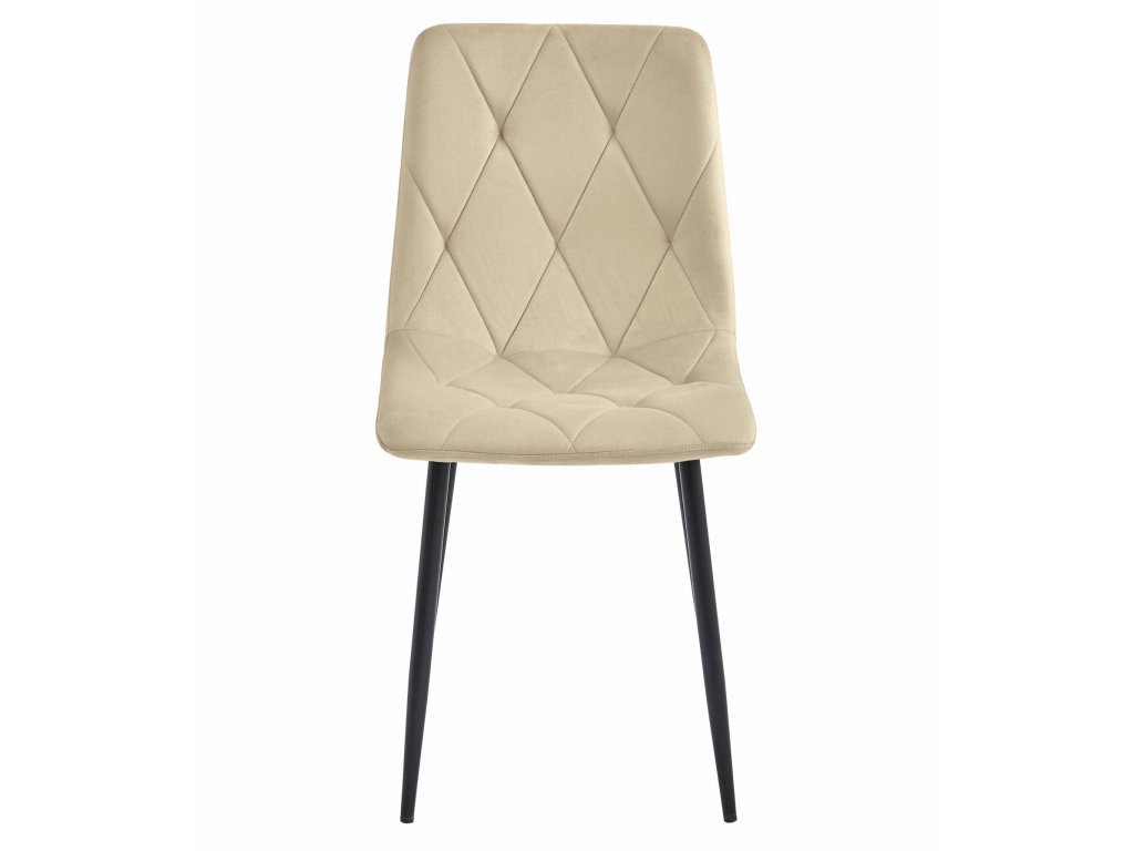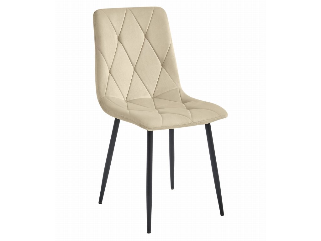 Svetlo bež žametni jedilni stol LIBRA s črnimi nogami