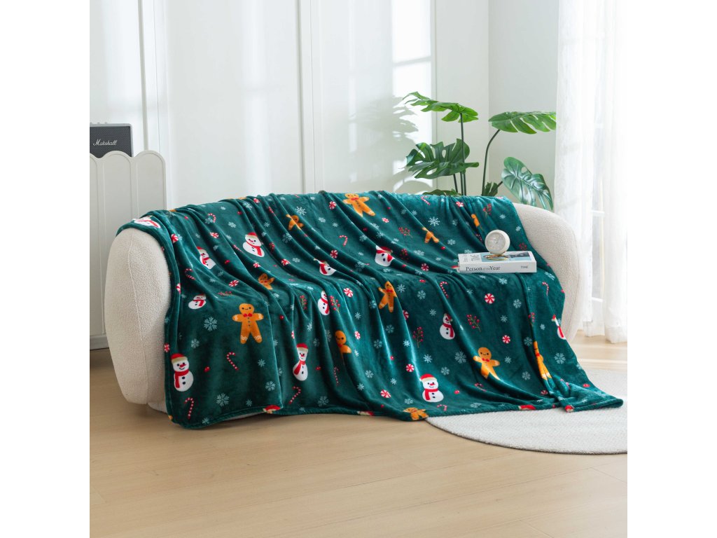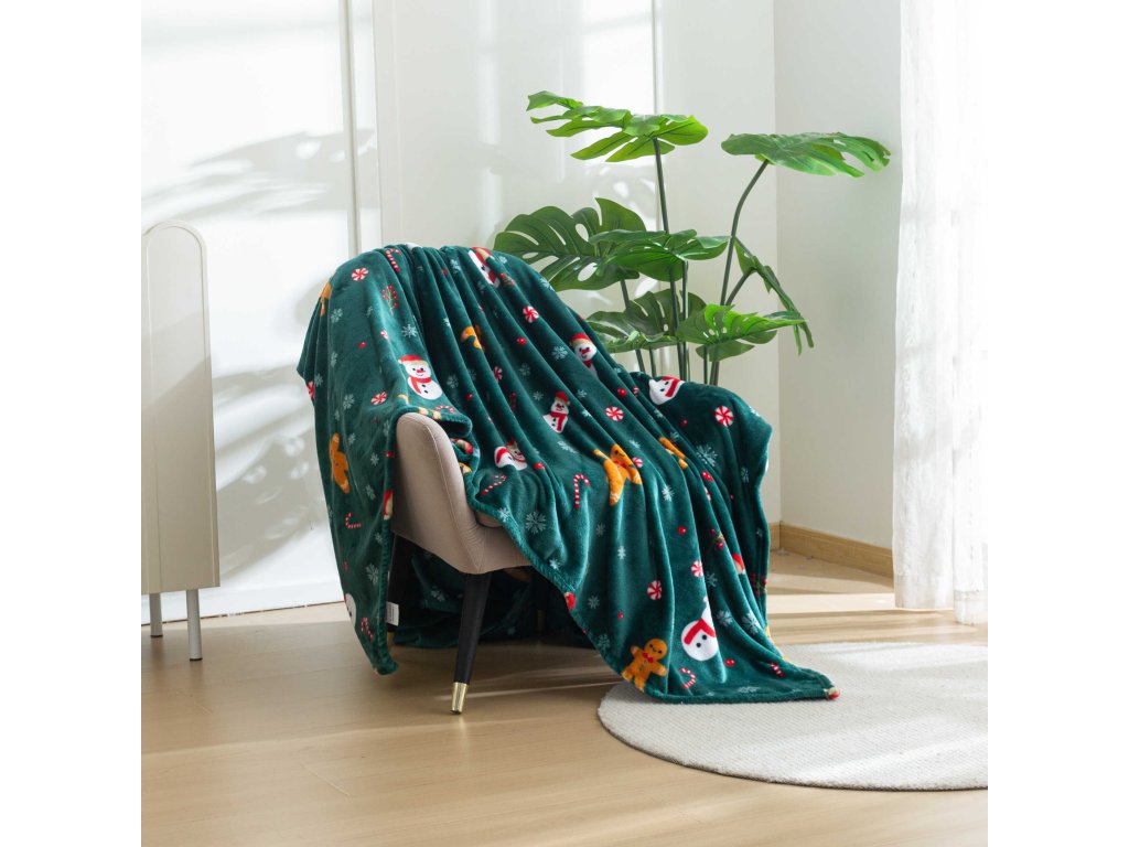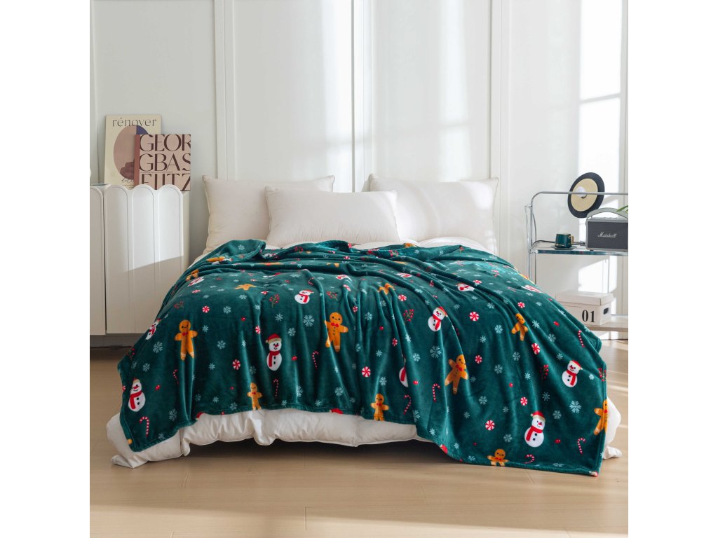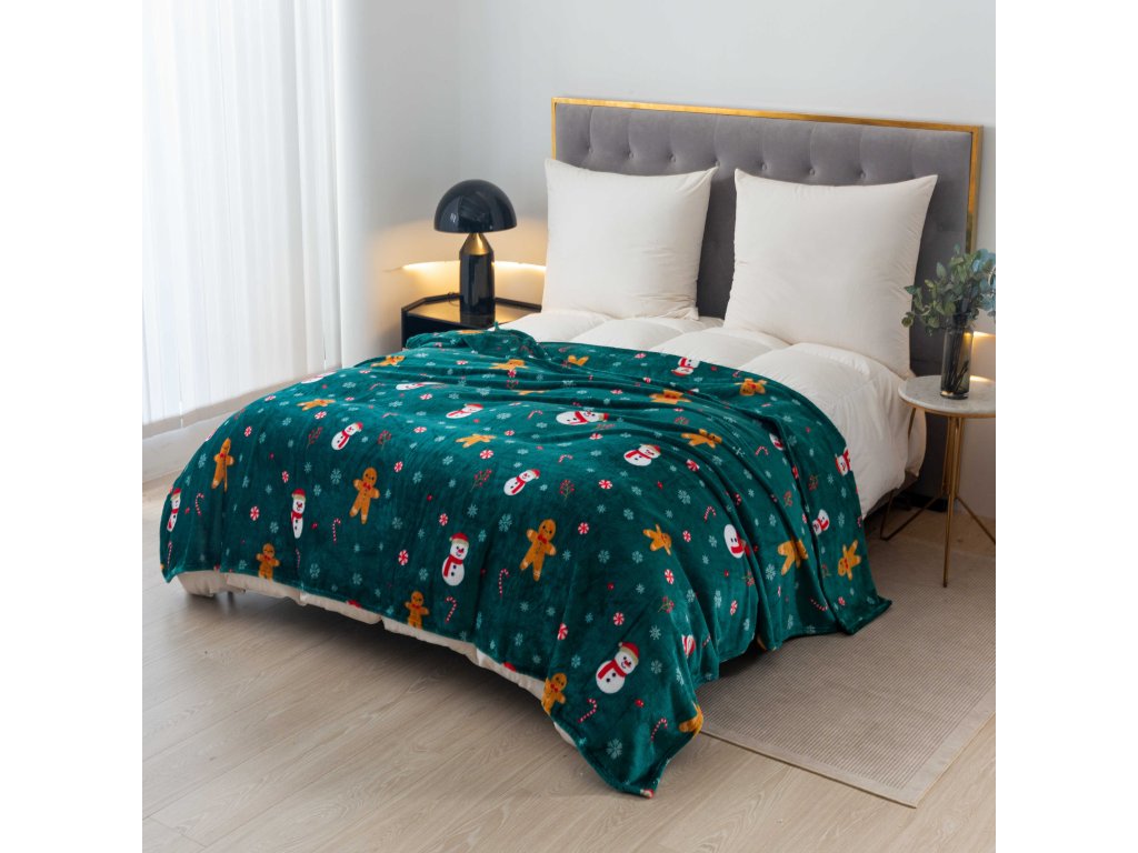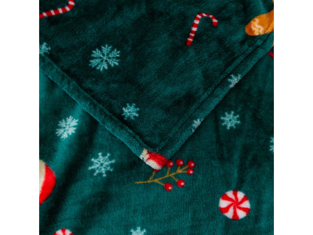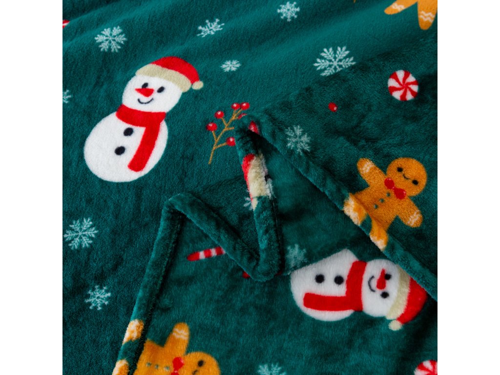 Božična mikroplišasta odeja SNOWMAN AND GINGERBREAD zelena
