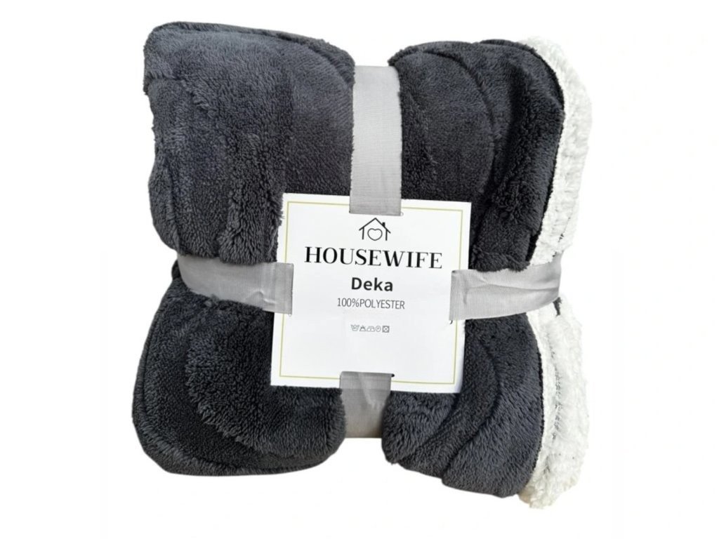 Luksuzna topla odeja z imitacijo ovčje volne iz mikropliša NESTIVE temno siva