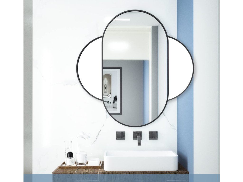 Ovalno ogledalo na steno OLVANI 80x40 cm s črnim okvirom