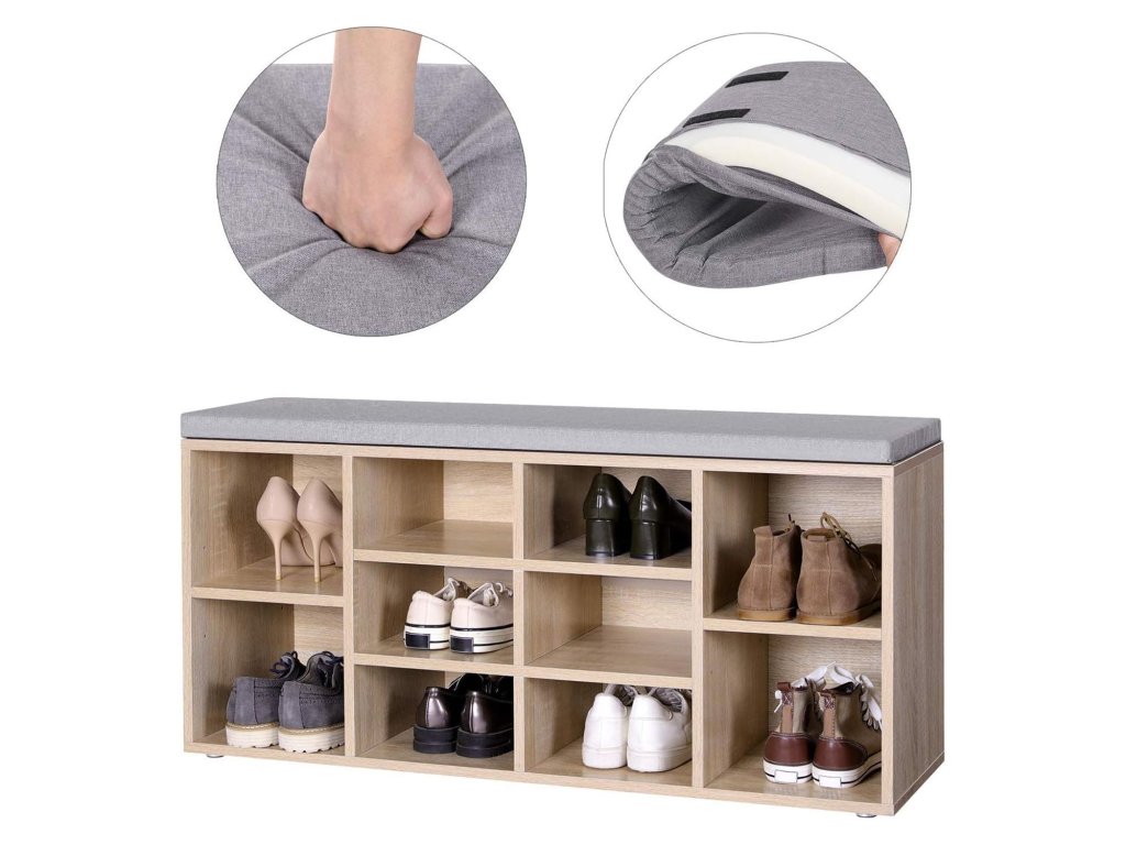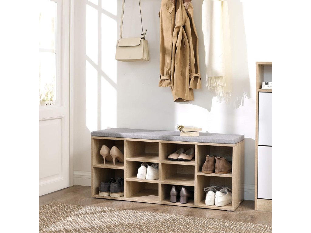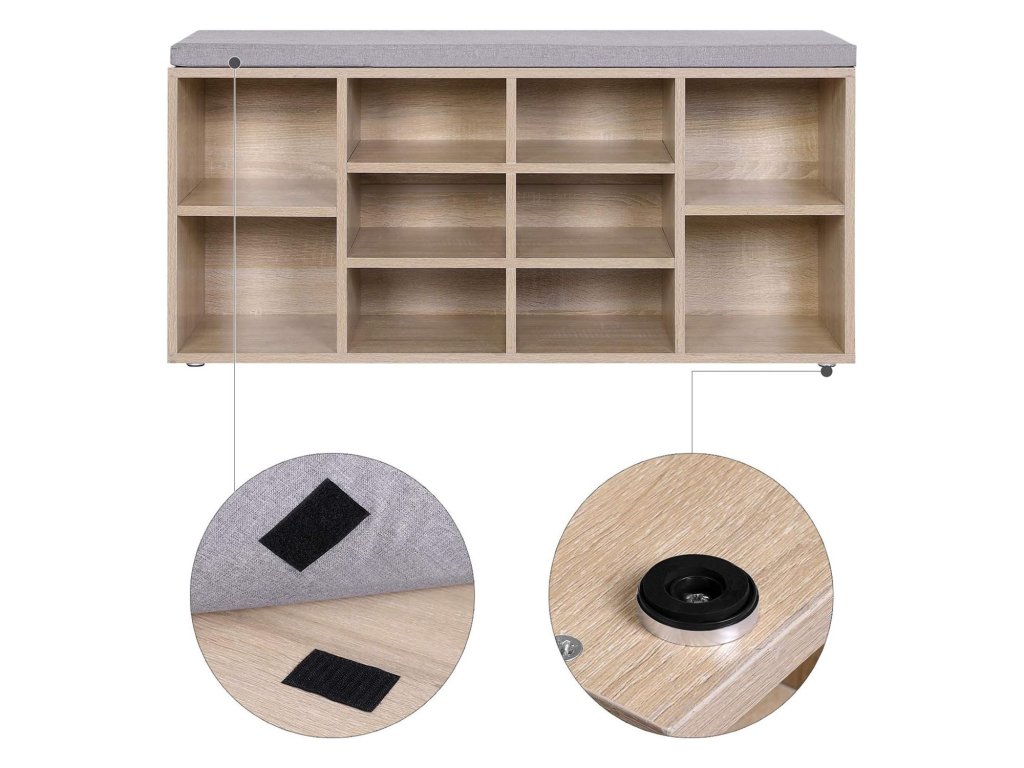 Uživajte v idealni kombinaciji udobja in funkcionalnosti s to klopjo z dvojnim shranjevanjem. Nudi ne le dovolj prostora za shranjevanje čevljev in drobnarij, ampak tudi prijetno mesto za sedenje. Popolnoma se prilega predsobi, otroški sobi ali spalnici, kjer ustvari prijetno vzdušje. Kombinacija praktičnih polic in udobnega sedeža zagotavlja, da bo ta kos pohištva vsakodnevno nepogrešljiv.