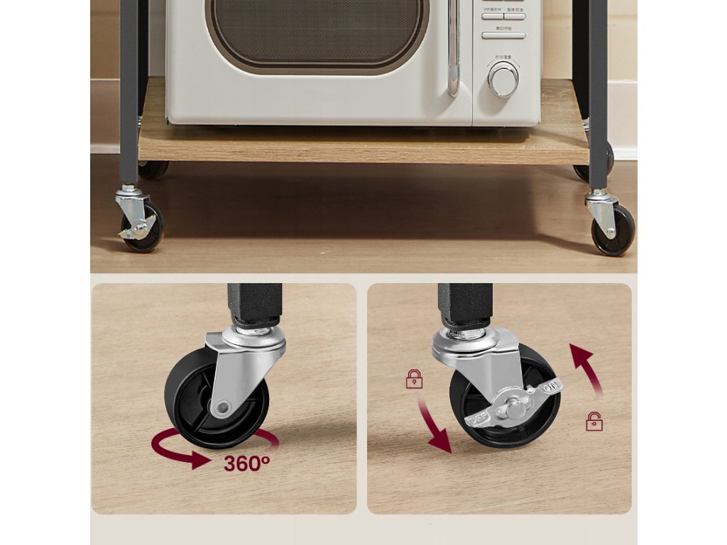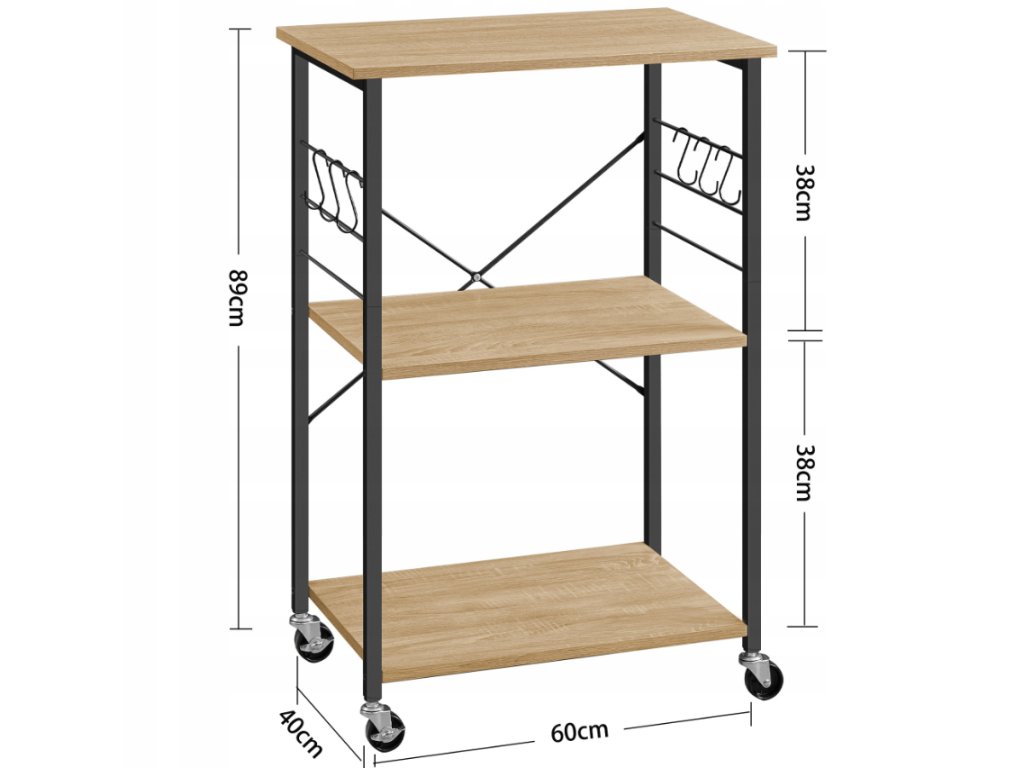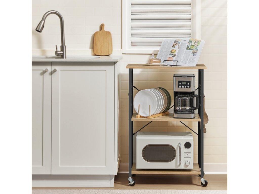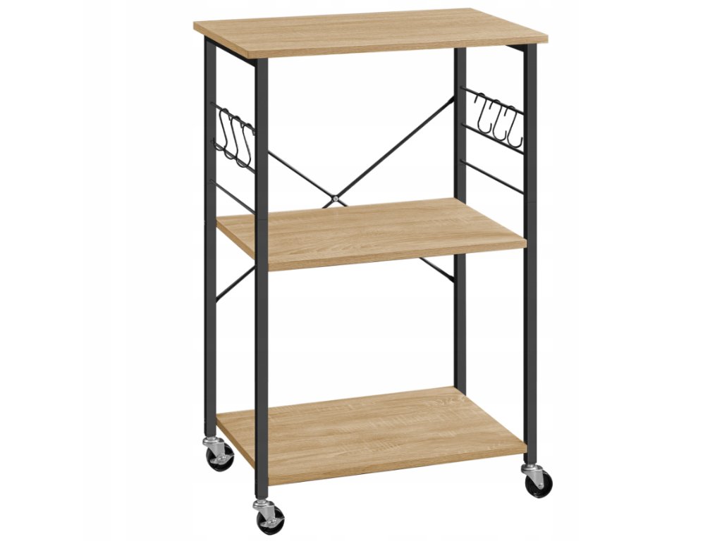 Večfunkcionalni kuhinjski regal na kolesih TRONUS, črna/dub sonoma