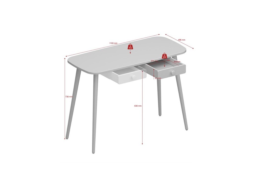 Bela otroška pisalna miza GRAZIA 075 z 1 predalom