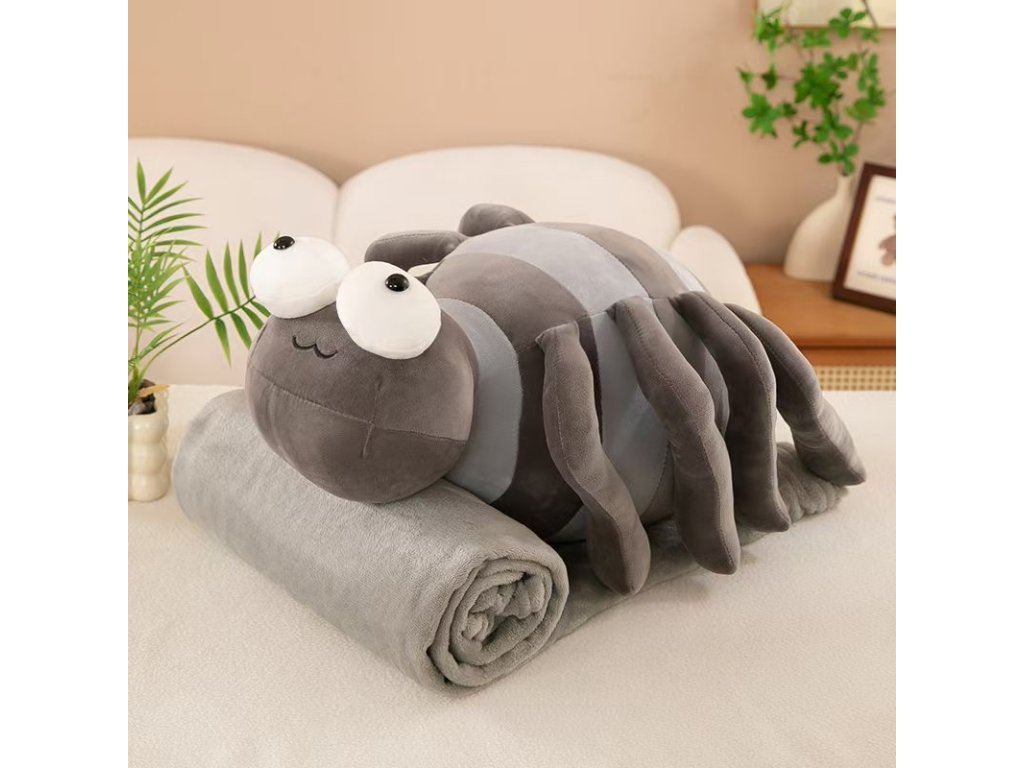Plišasti PAJEK z otroško odejo znotraj, siv