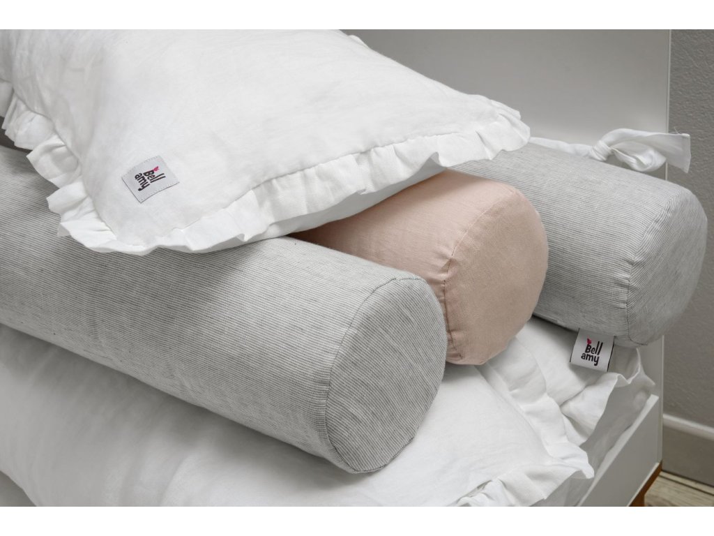 Rožnata lanena blazina v obliki valja DUSTY PINK 14 x 55 cm