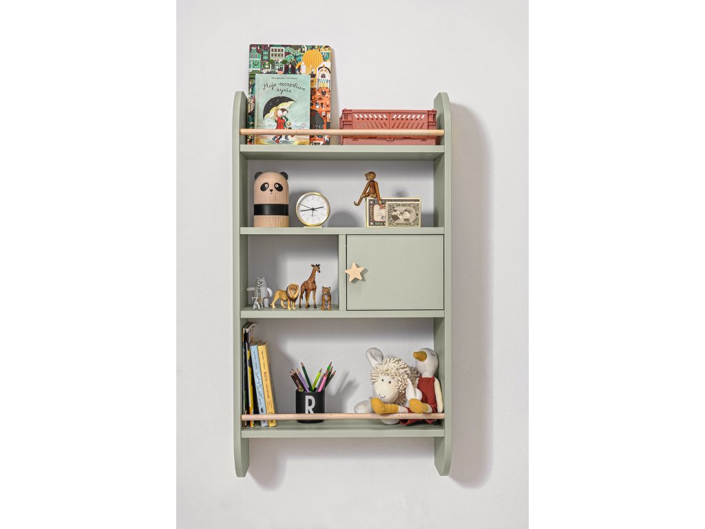 - Lahko se obesi visoko na steno ali poleg tal, kar omogoča otroku enostaven dostop do police,
