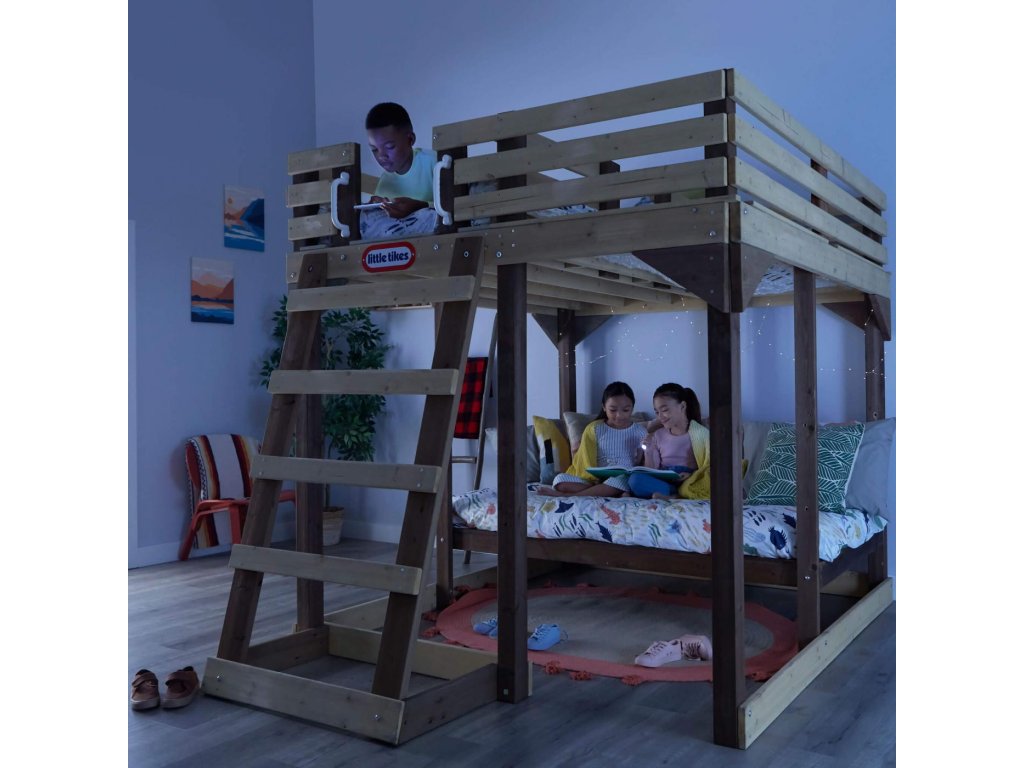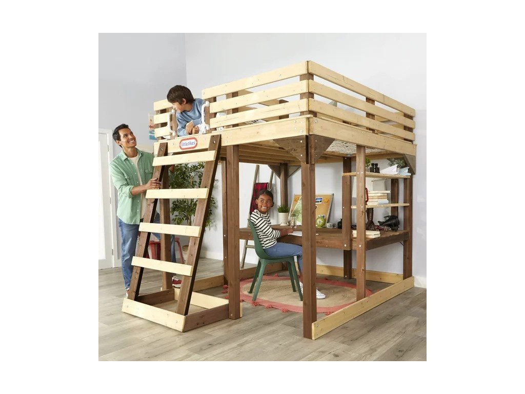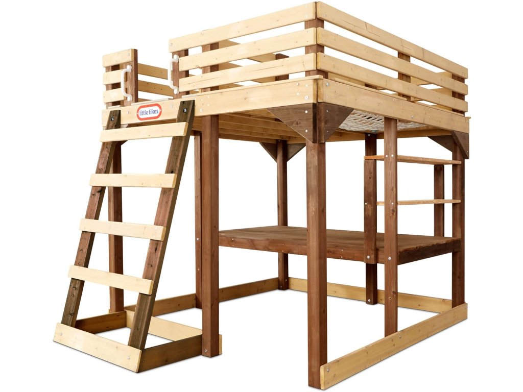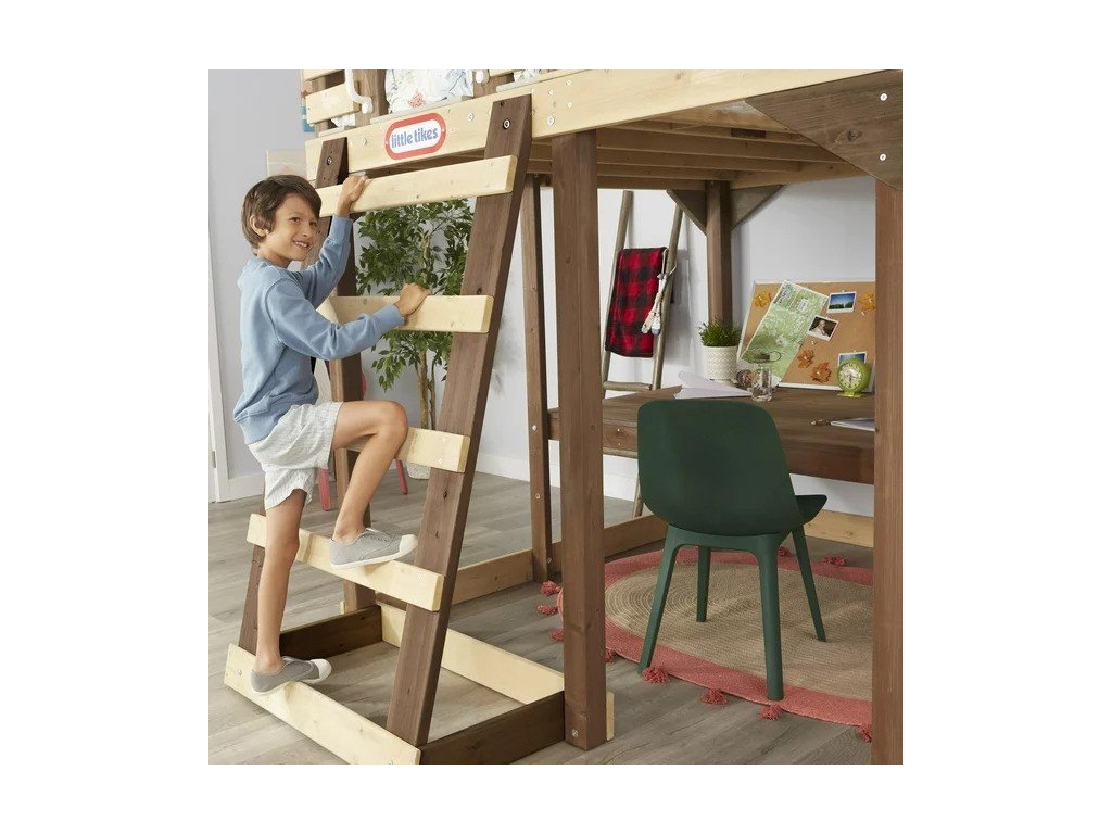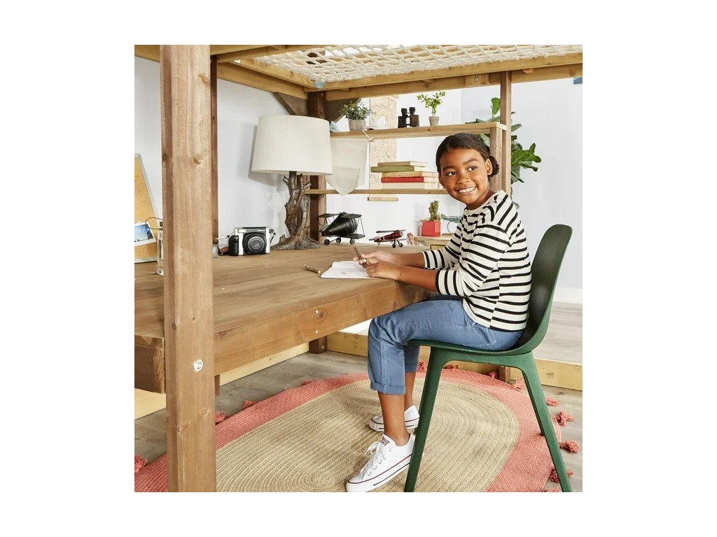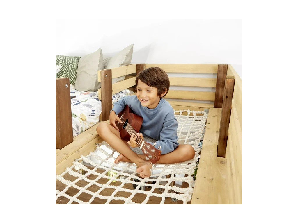 - S shranjevalnimi policami, lestvijo, pisalno mizo in visečo mrežo