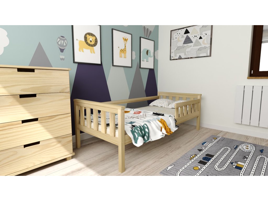 Otroška postelja MONTY 90 x 200 cm, borov les v naravni borovi barvi združuje funkcionalnost, estetiko in zdravstvene koristi. Zahvaljujoč uporabi masivnega lesa in nežnega laka ustvarja varno in zdravo okolje za vsakodnevni počitek. Višja čela postelji dodajo prijetnost in nudijo oporo pri branju ali sproščanju. Ta model je idealen za starše, ki dajejo prednost naravnim materialom in dolgi življenjski dobi pohištva v otroški sobi.