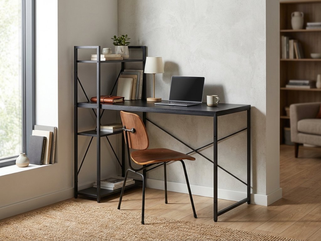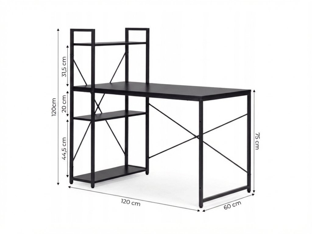 Pisalna miza z regalom LOFTY 120x60 cm, črna